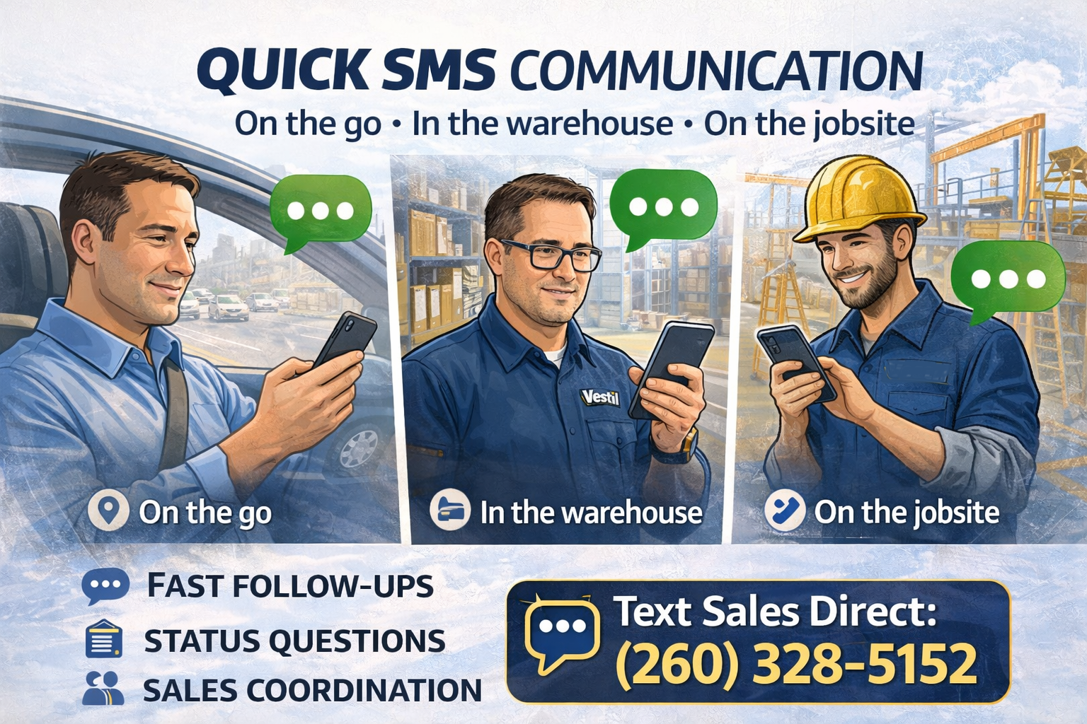 Texting can be one of the easiest ways to get a fast response when you are on the go, in the warehouse, on a jobsite, or managing multiple customer requests at once.