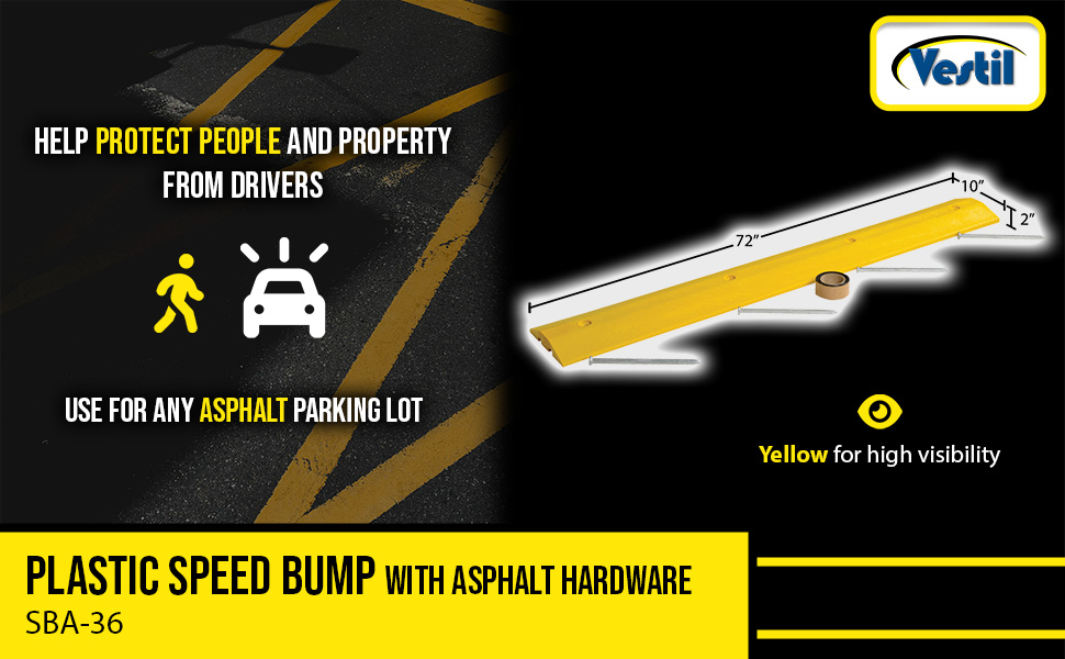 SBA-36 SBA-36Plastic Speed Bump Asphalt Hardware 72 In. x 10 In. x 2 In. YellowCompression Strength Per Square Inch (lb.): 3200