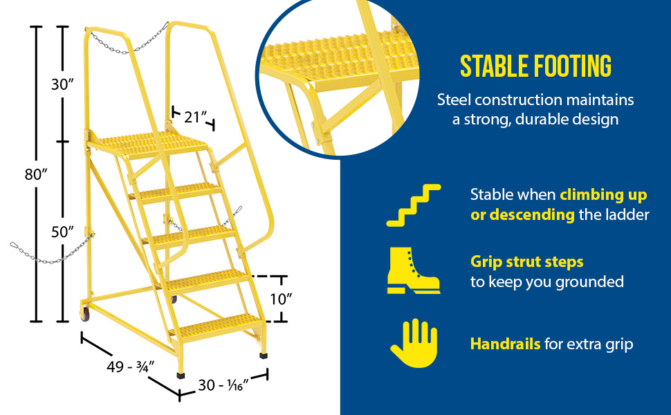 LAD-STAL-5-G LAD-STAL-5-GSteel Semi-Trailer Access Ladder 58 Degree 5 Grip Strut 24 In. Step Width 350 Lb. Capacity BlueUniform Capacity (lb.): 350