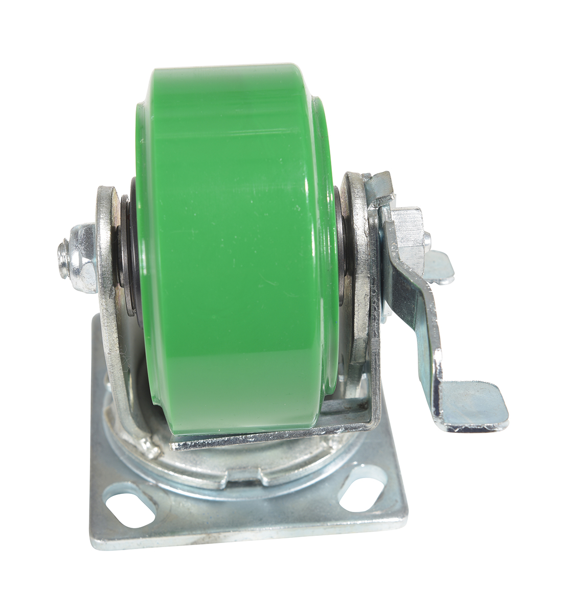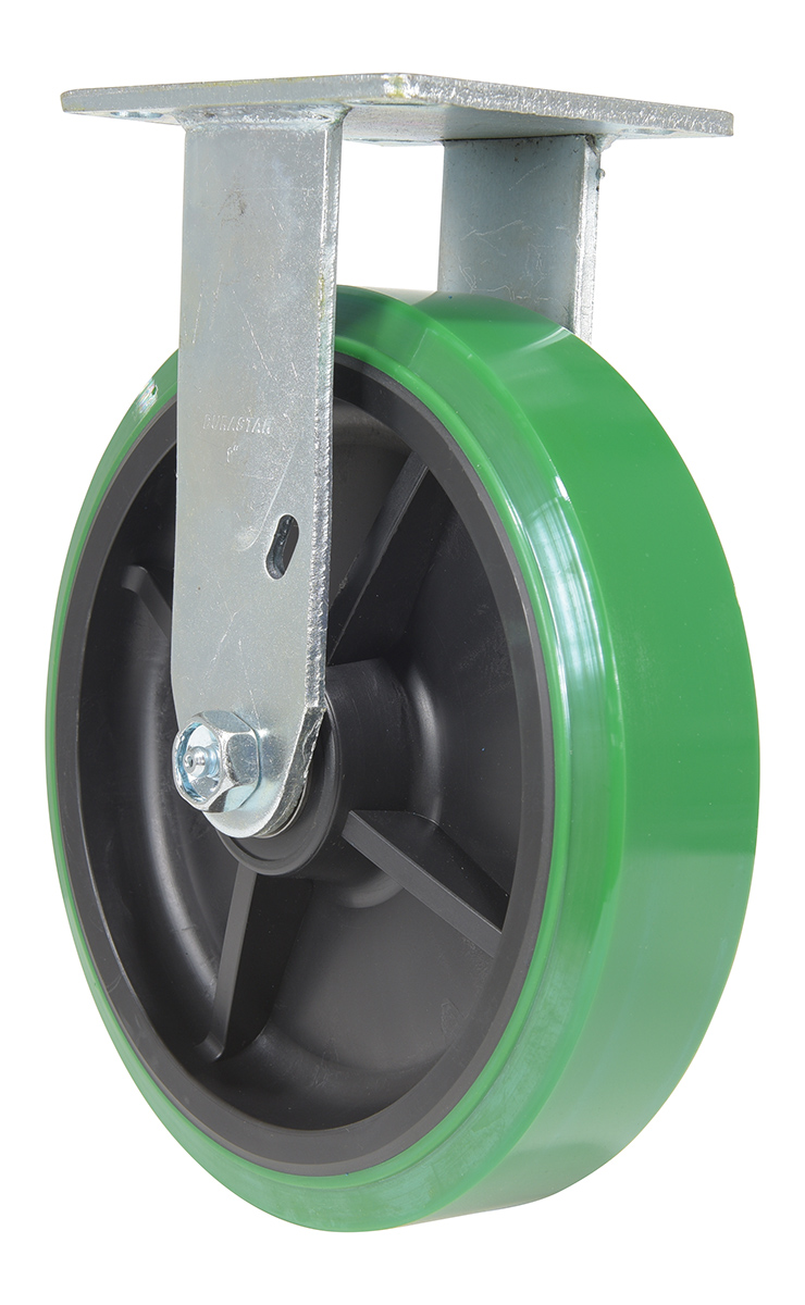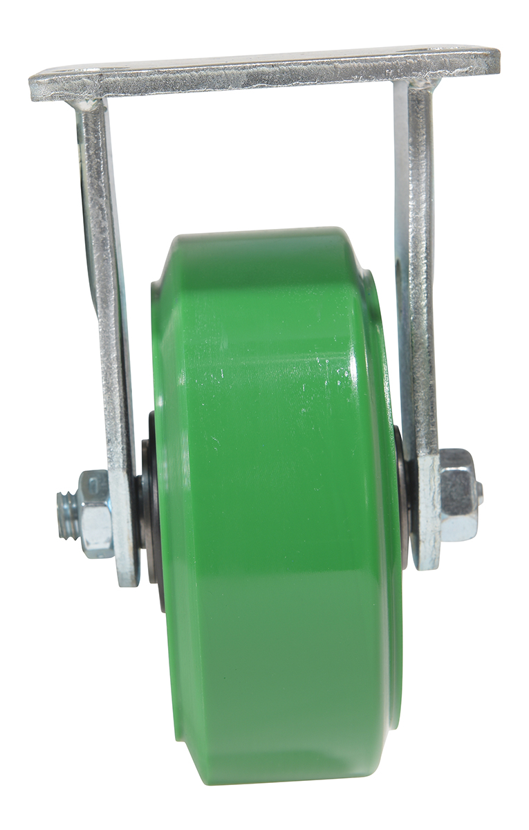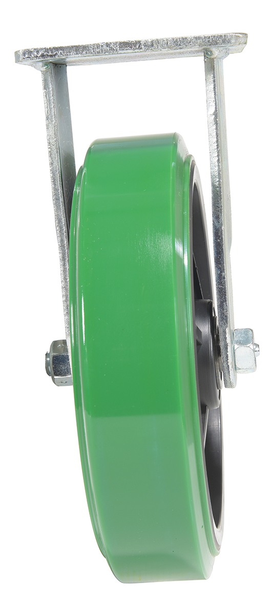 Made with 100% pure polyurethane tread. This caster is a great upgrade for standard polyurethane. Designed using a new liquid cast flow fusion that ensures a 100% mechanical bond to core and "zero" trapped air. It has a high resistance to debris and most chemicals. The proprietary tread provides good floor preservation, and has a longer life performance than standard polyurethanes. Green tread color. 90-95 shore a. Wheel center is constructed of polyolefin.