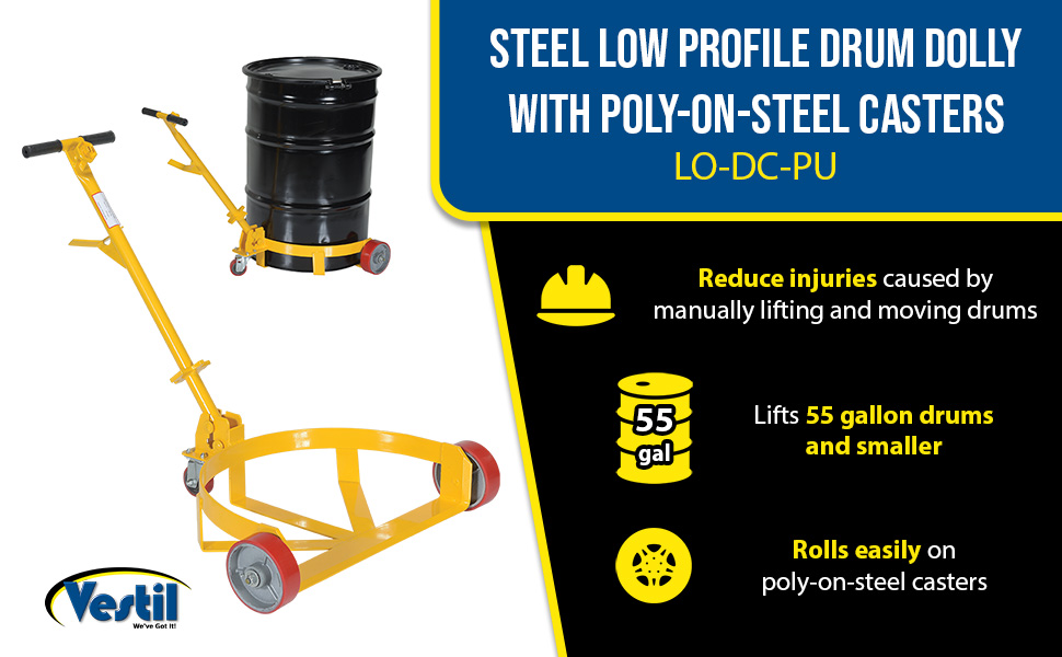 LO-DC-PU LO-DC-PUSteel Low Profile Drum Dolly with Poly On Steel Casters 21-5/8 In. x 31-5/8 In. x 37-5/8 In. 1200 Lb. Capacity YellowUniform Capacity (lb.): 1,200