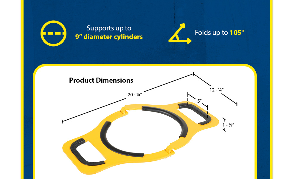 CYL-M-10 CYL-M-10Steel Manual Cylinder Lifter 10 In. Maximum Cylinder Diameter 200 Lb. Capacity YellowUniform Capacity (lb.): 200