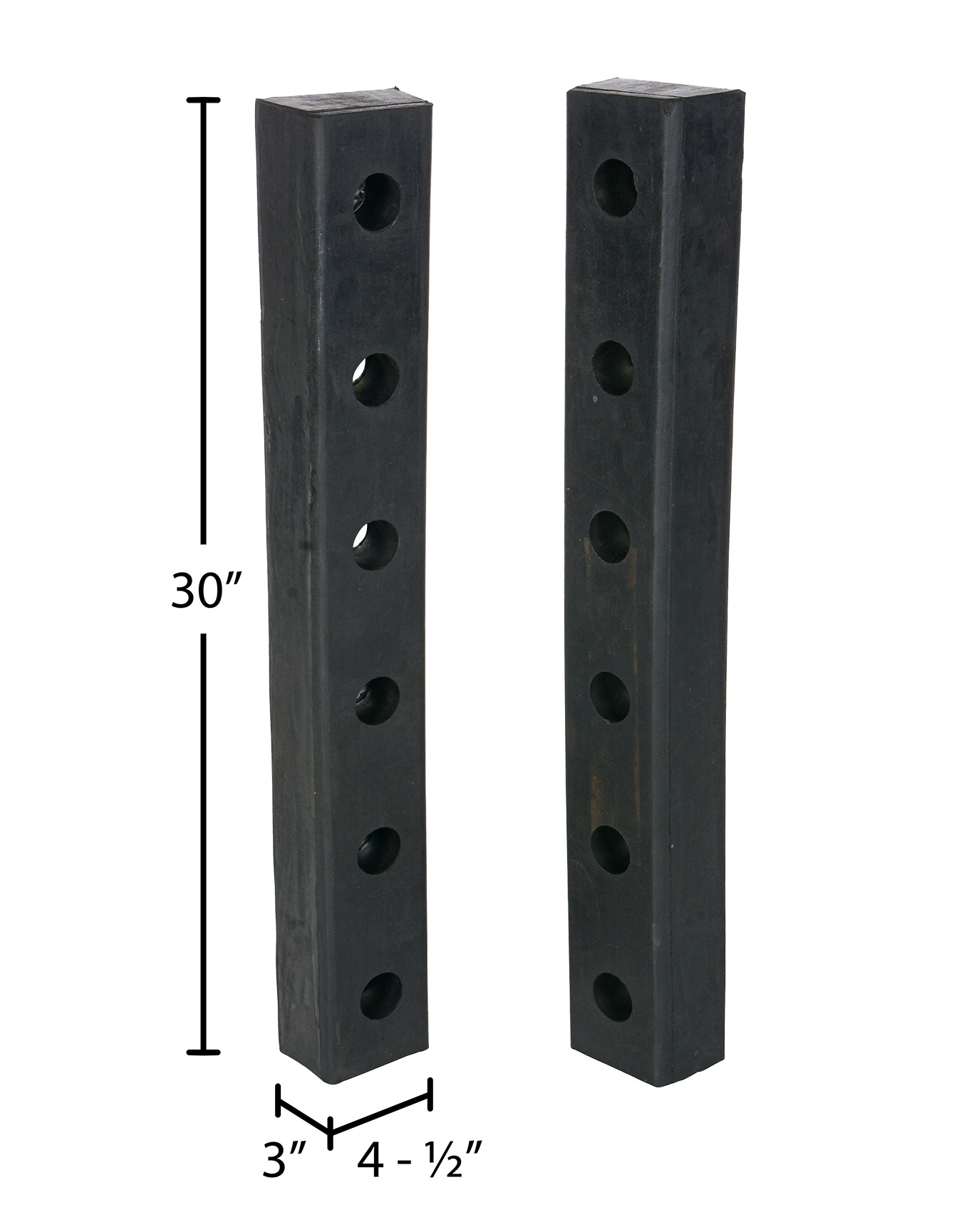 The hardened molded bumper is a pre-drilled bumper that is constructed of fiber reinforced rubber containing nylon and polyester for all weather conditions. This bumper provides high impact resistance and steel reinforcement rings molded into each bumper for installation. Bumper is sold individually and installation hardware sold separately.