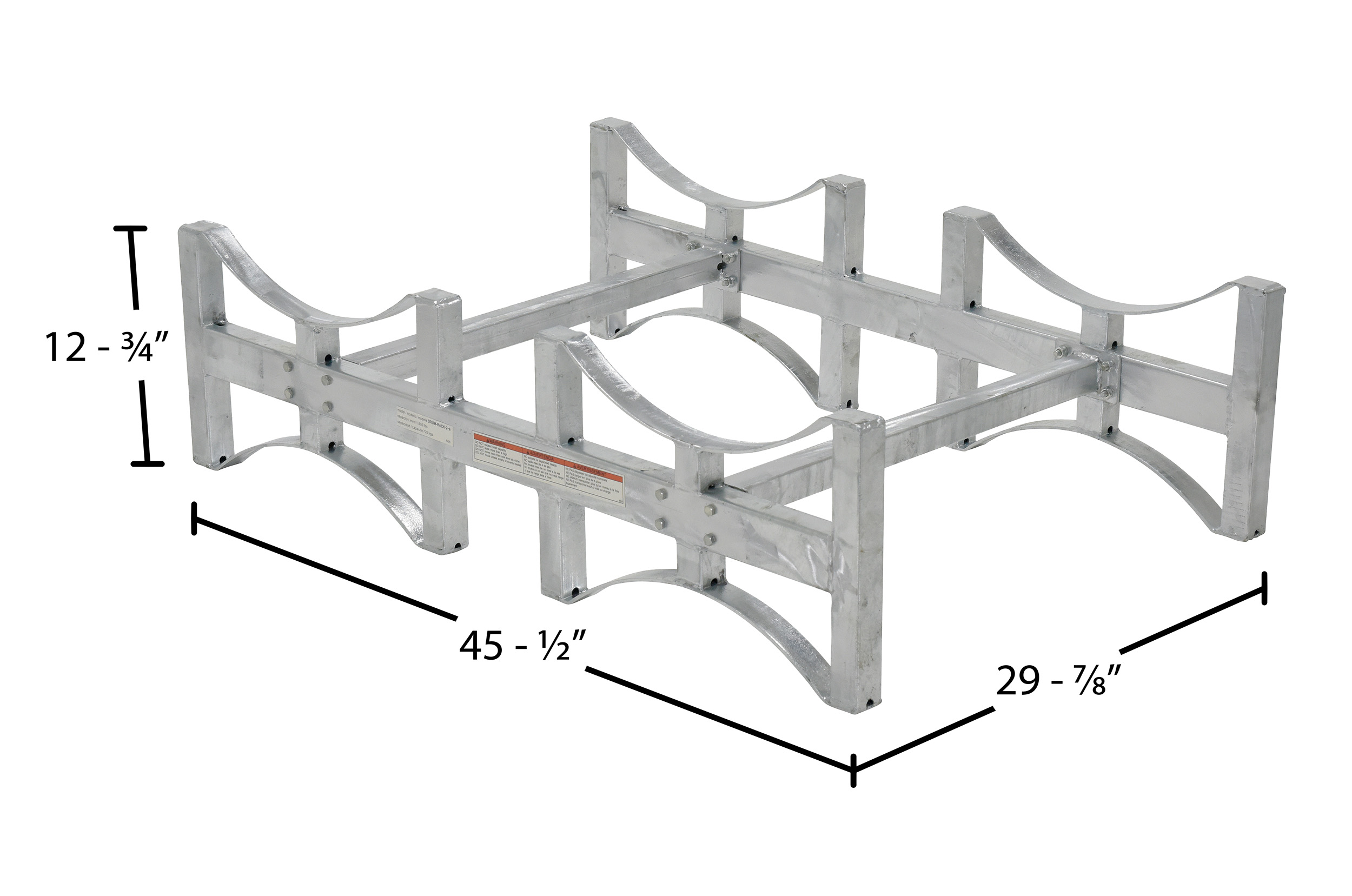 Galvanized Steel Stackable Drum Rack 2 Drum 55 Gallon 1600 Lb. Capacity GrayThis steel drum rack has four-way fork truck access. Not recommended for stacking more than four (4) racks high. All steel construction with formed steel cradles. Bolt together assembly with hardware included.