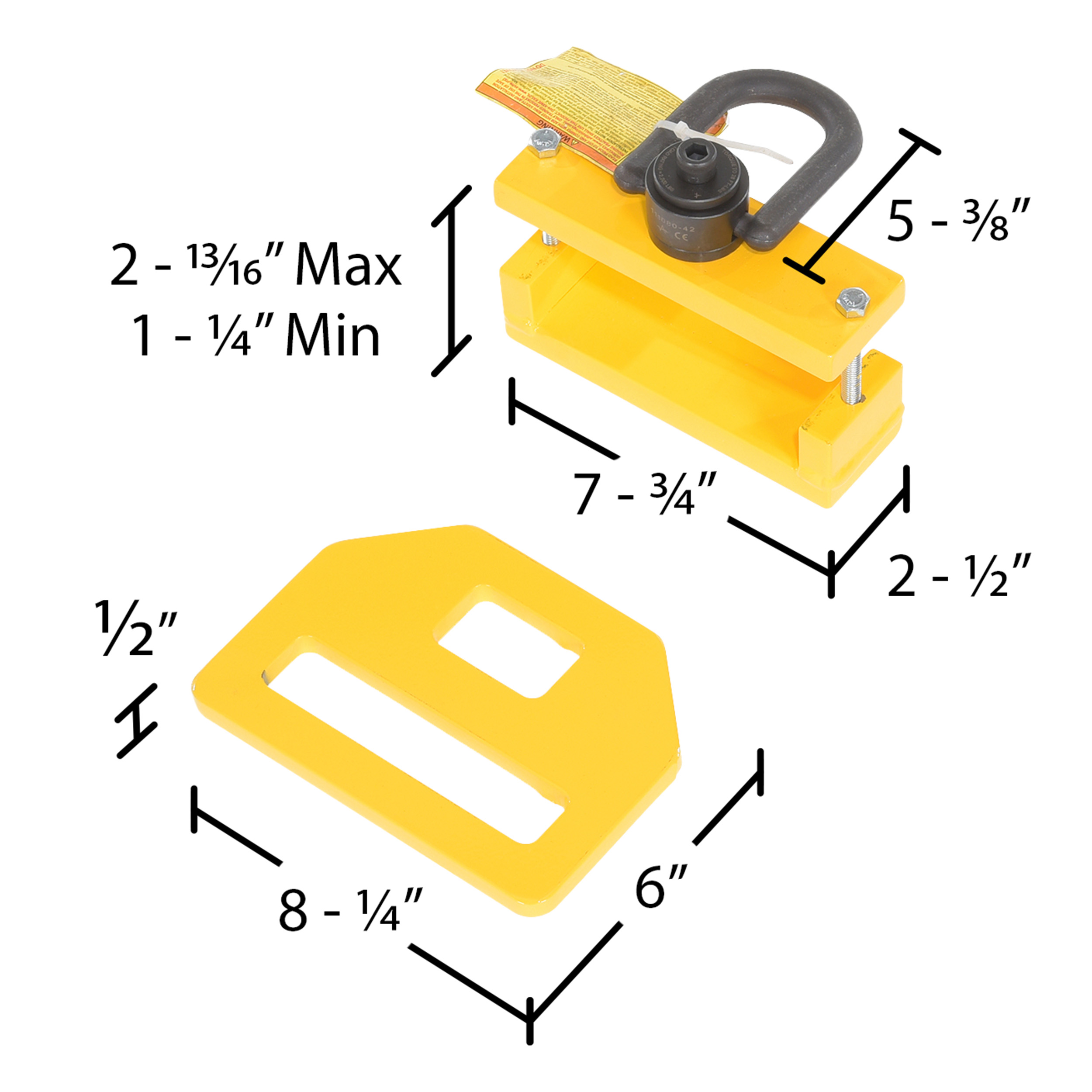 | Eye Bracket Fork Opening Width/Height (in.): 6-1/4 x 1-1/4 | Eye Bracket Lift Opening Width/Height (in.): 2-1/2 x 1-1/2 | Eye Bracket Thickness (in.): 1/2 |