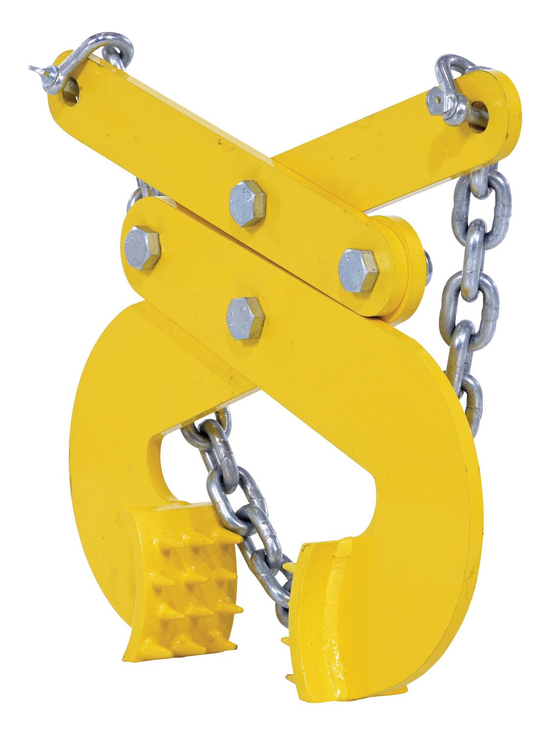 PAL-14 - Cam closing action provides maximum gripping strength and reduces pinch points. Safety handle enables easier positioning and removal. Grips both metal and wood pallets with biting action.