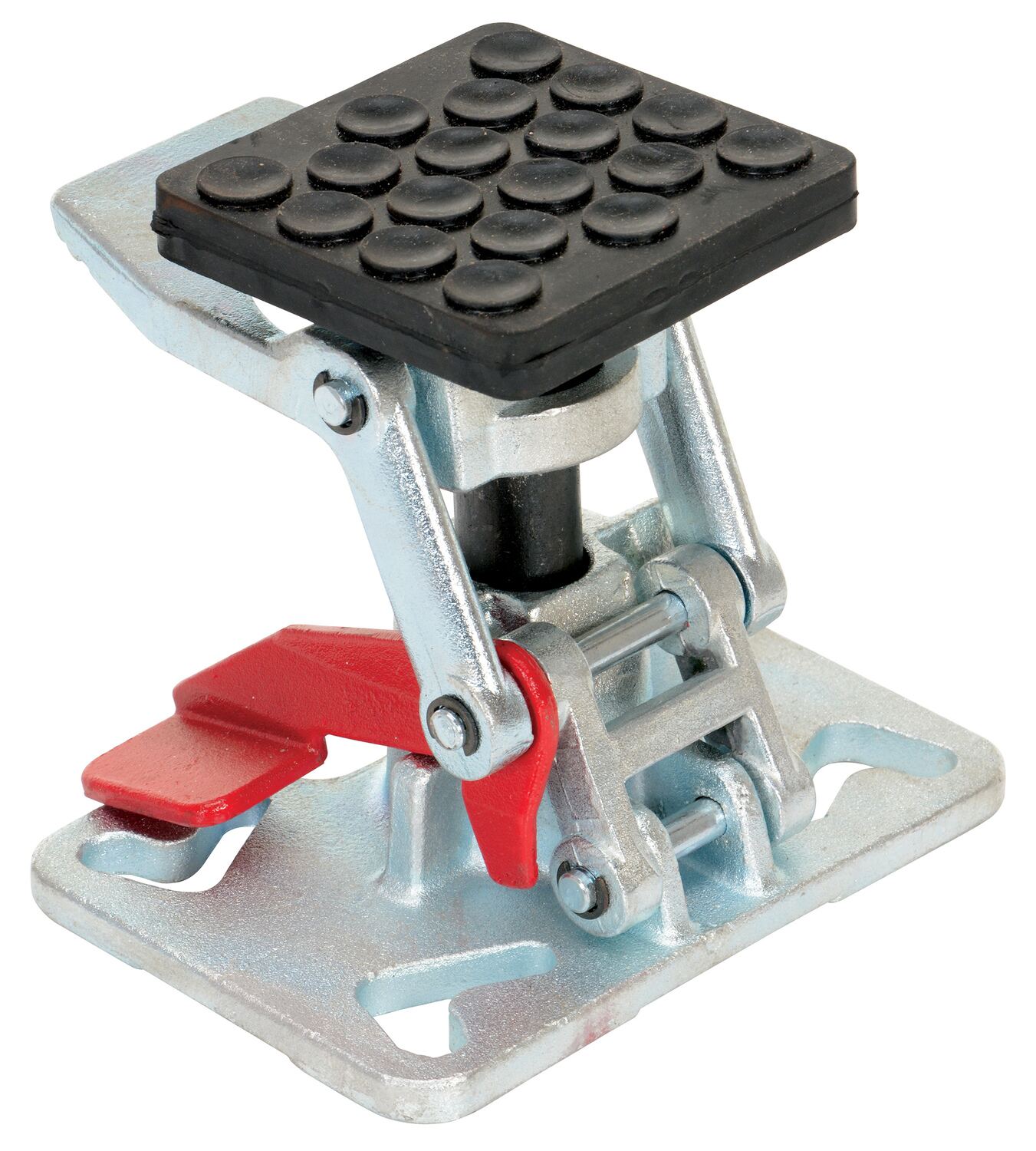 This one of a kind floor lock includes an adjustable height foot pad that will work on carts with different caster heights. The adjustable height feature provides uniform locking and safety unlocking force for better ergonomic operation. This feature also keeps the floor lock working properly as spring and pads wear over time. Height is adjustable by turning the bottom pad. The bottom pad includes suction-cups for extra grip.