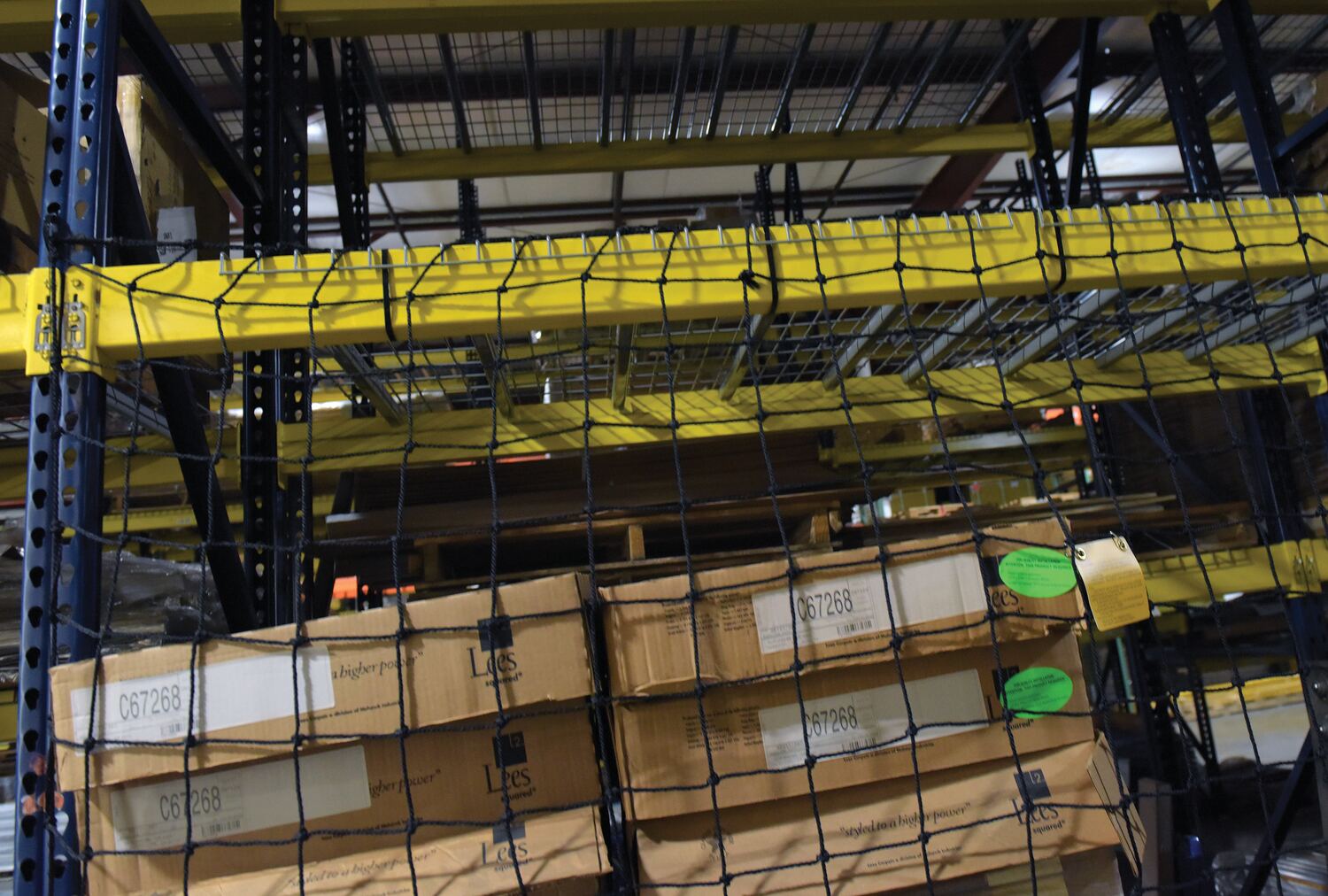• Pallet rack netting minimizes the potential of racked products falling off the back of pallet racks
