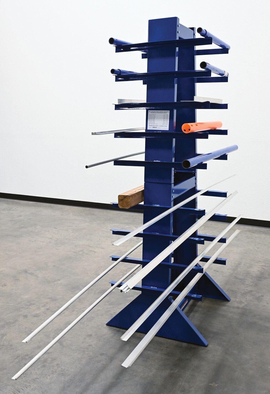 Ideal for use in maintenance departments, tool rooms, machine shops, and storage areas. Arms extend and act as dividers creating bays of storage. Nine arm levels can store material up to 10 feet long. Aligning two units next to each other will allow for the storage of longer material. Arm edges are sloped upward to prevent roll off's. Arms are welded at 6" increments with 6" between levels. Total uniform rack capacity is 2,600 pounds evenly distributed. Unit has predrilled lag down points and ships knocked down. Steel construction with baked-in powder-coated toughness.