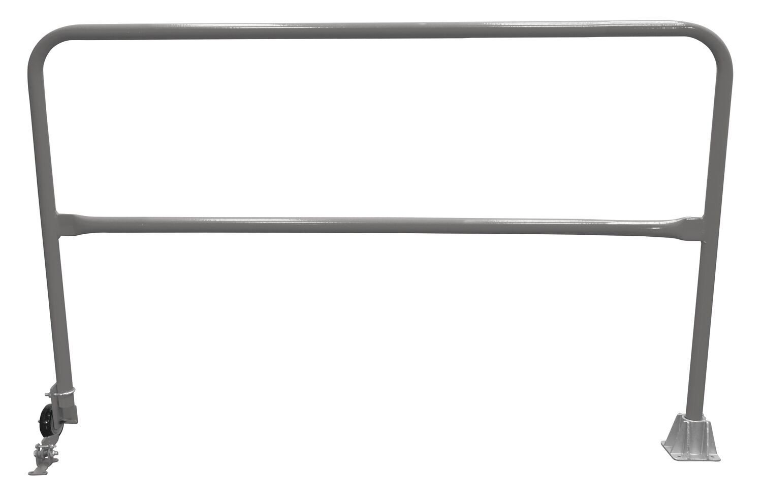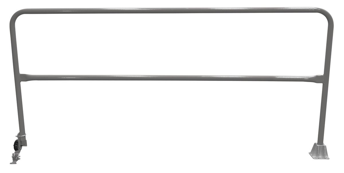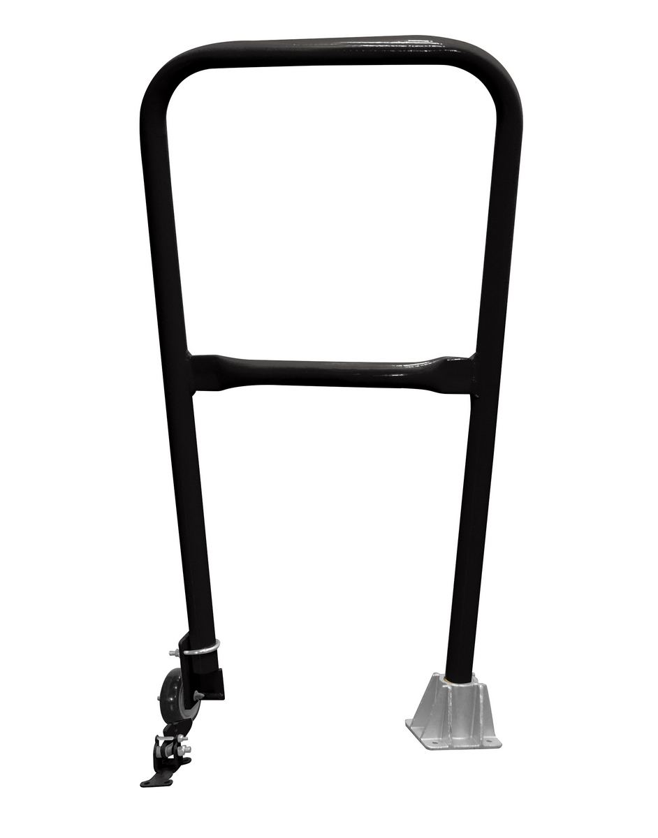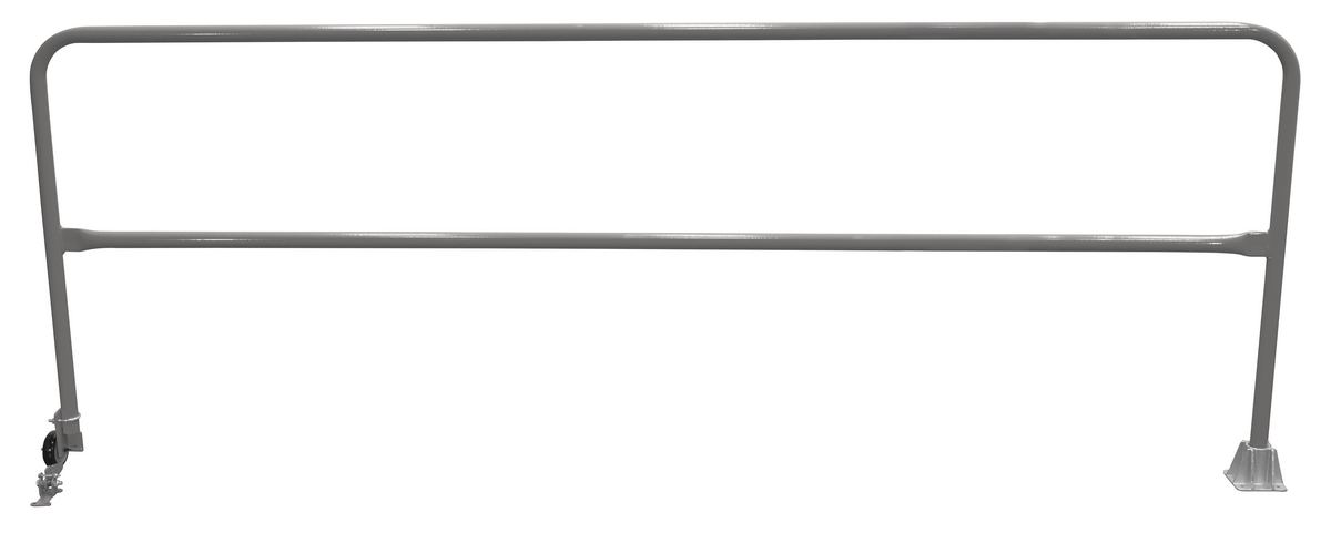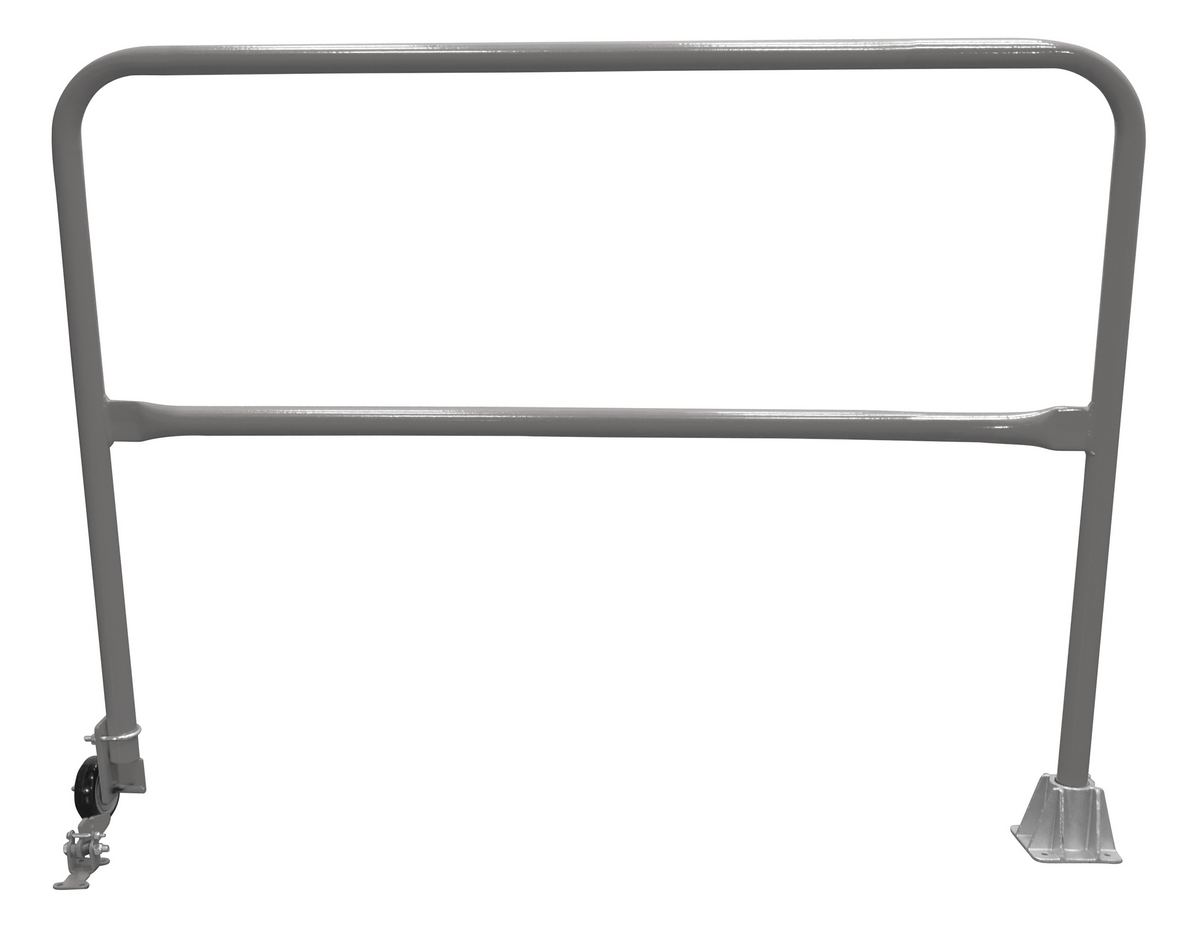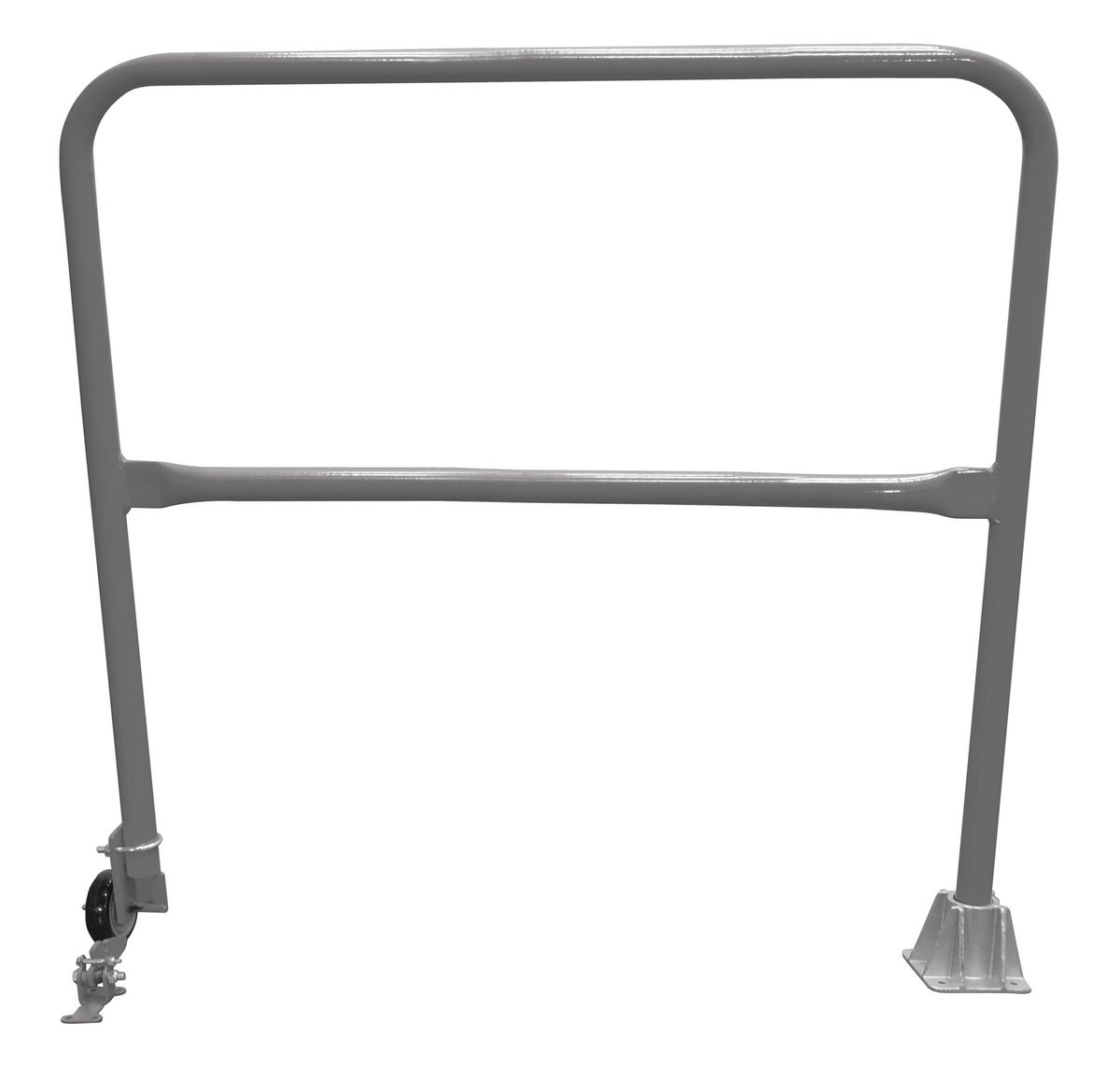 Economical Safety Swing Gates are an economical way to protect people from dock falls. Durable railings are constructed from schedule 10 pipe (1-5/8" O.D.). Units have a top rail height of 46-1/4" and a 25" mid-rail. 4" poly-on-poly wheel allows units to be swung out of the way. Cast single socket is included.