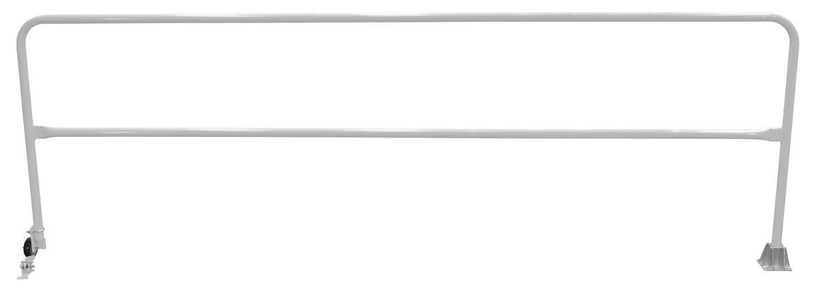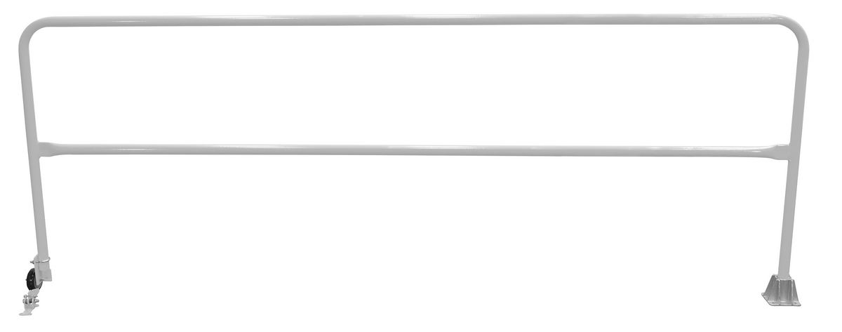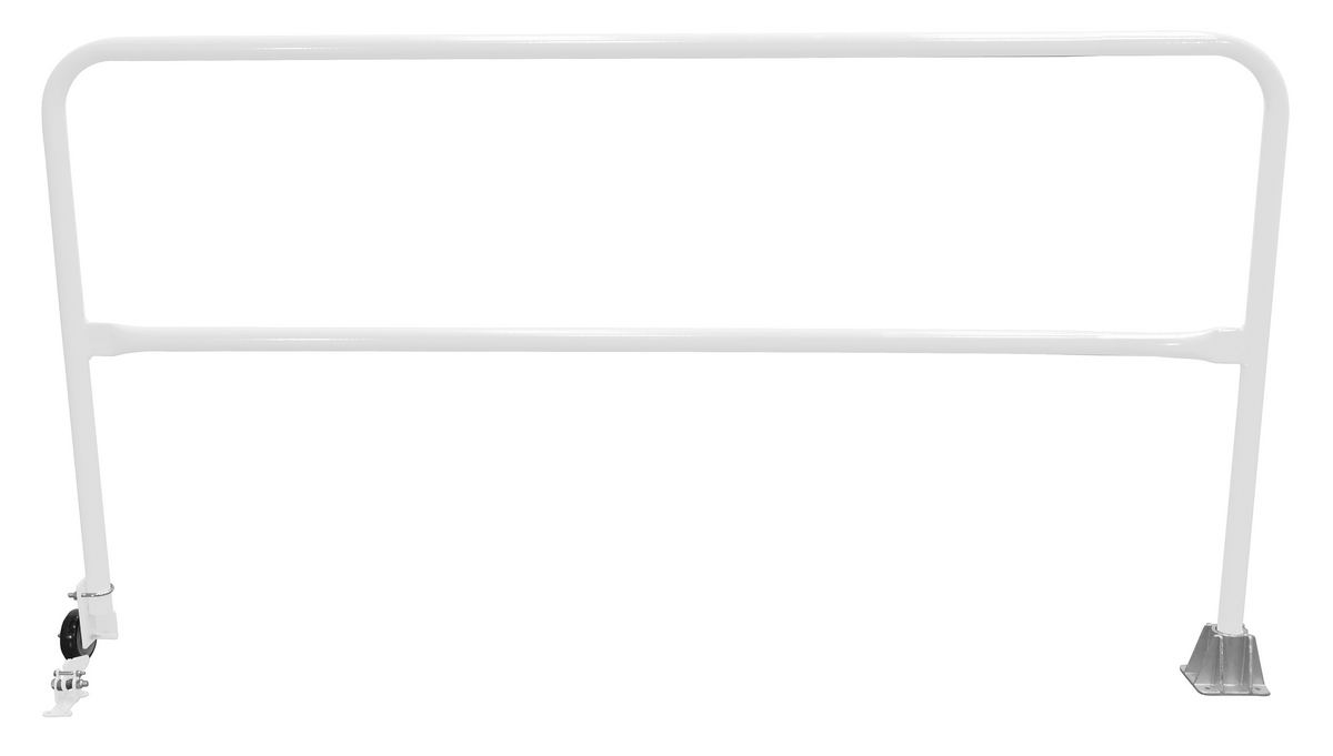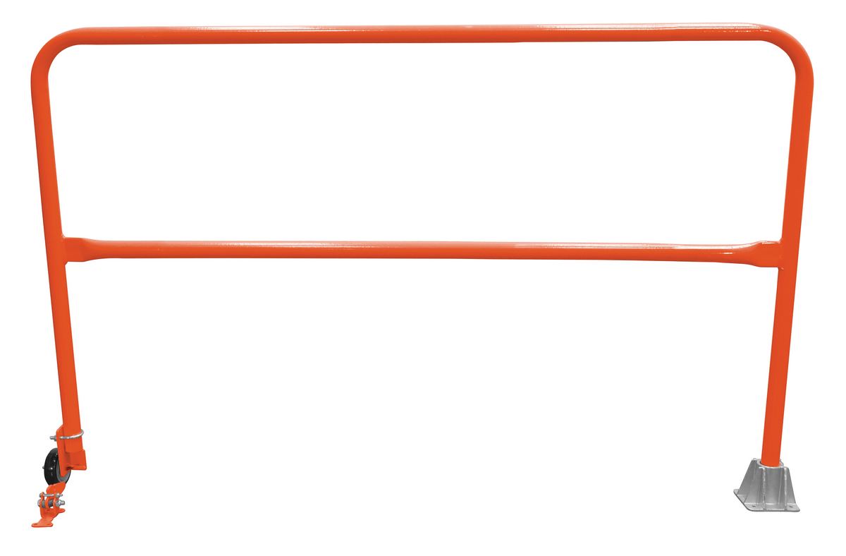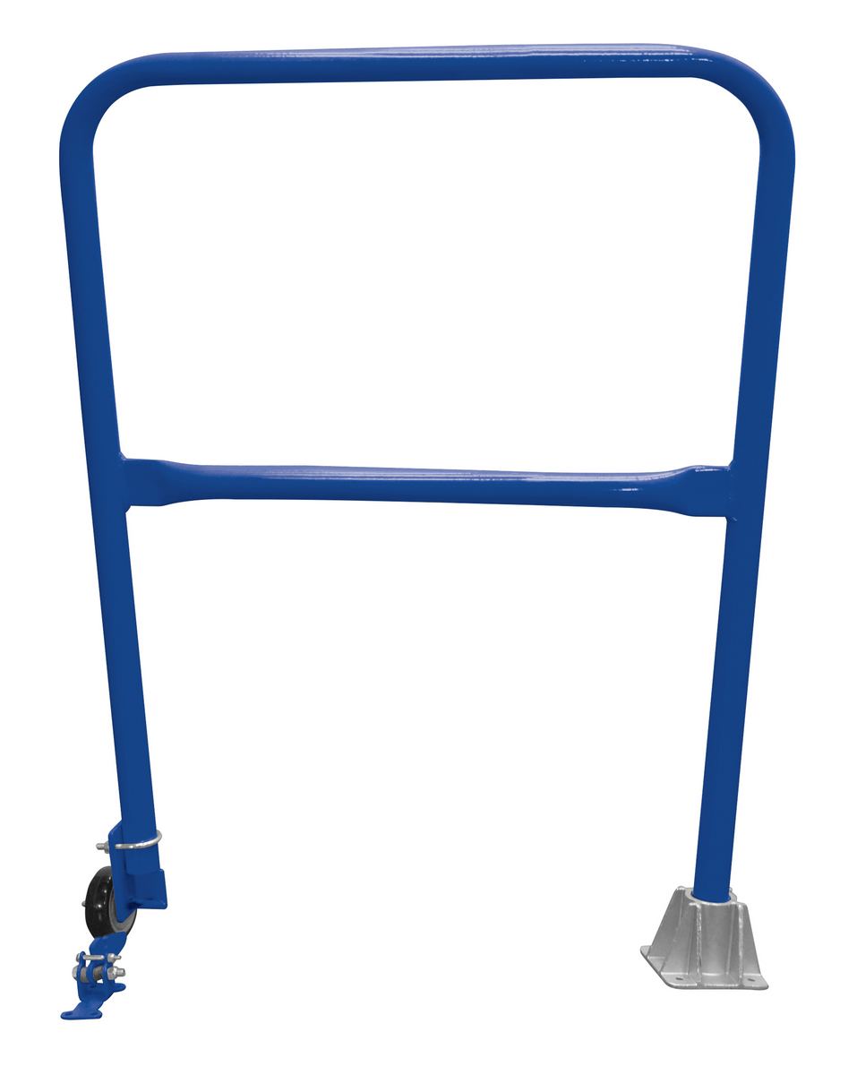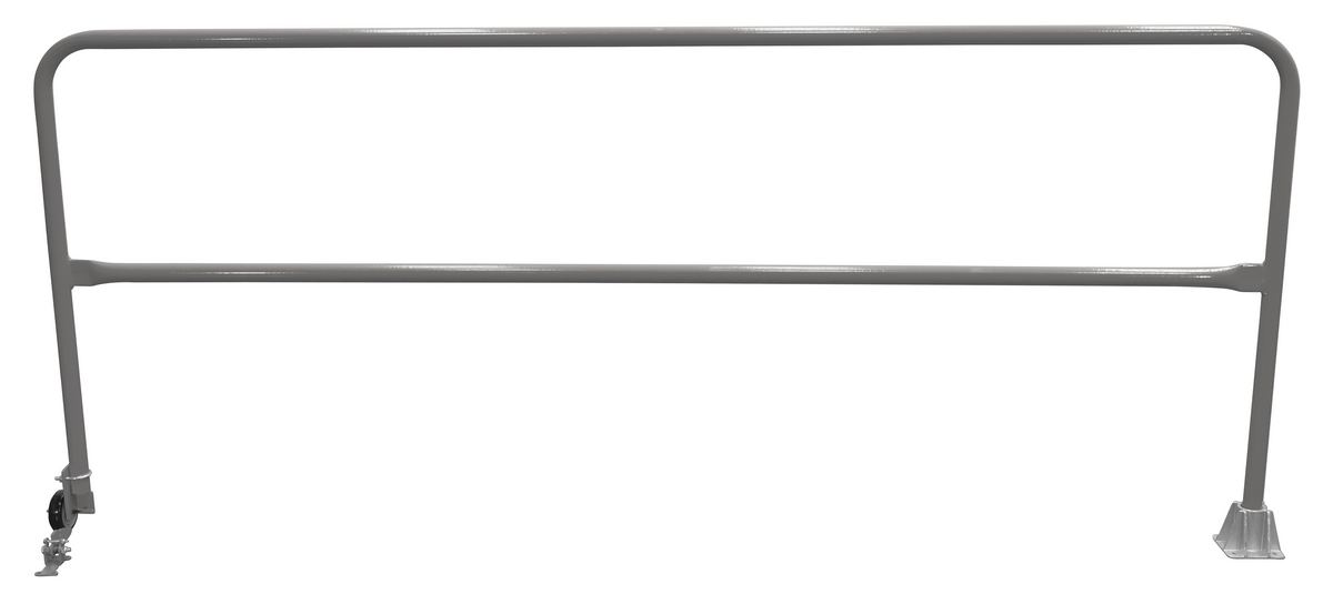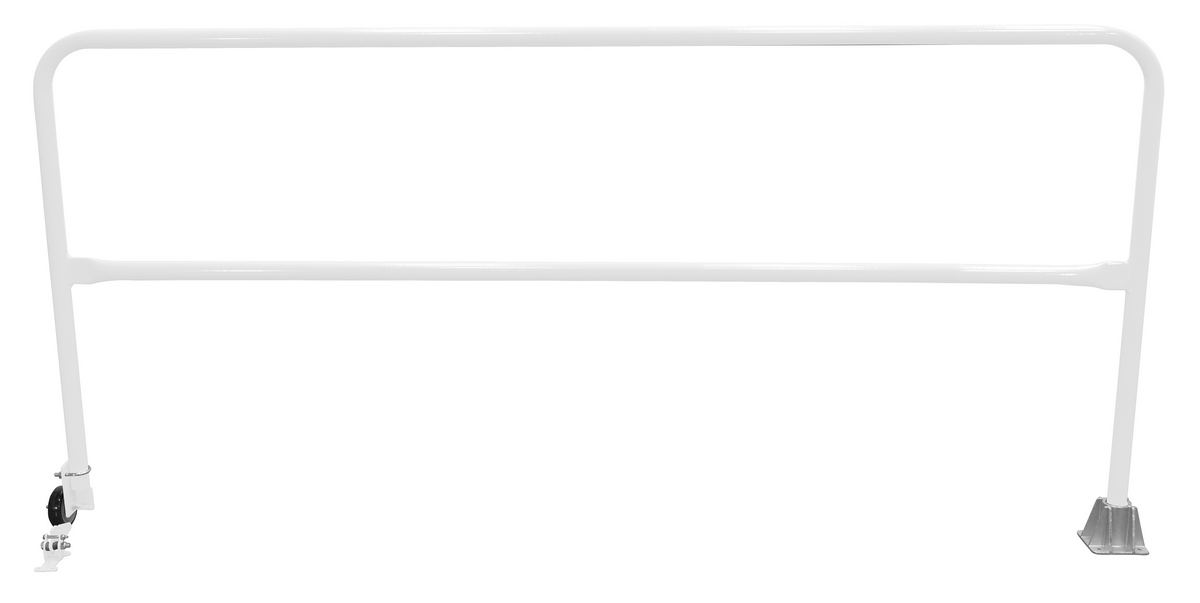 Economical Safety Swing Gates are an economical way to protect people from dock falls. Durable railings are constructed from schedule 10 pipe (1-5/8" O.D.). Units have a top rail height of 46-1/4" and a 25" mid-rail. 4" poly-on-poly wheel allows units to be swung out of the way. Cast single socket is included.
