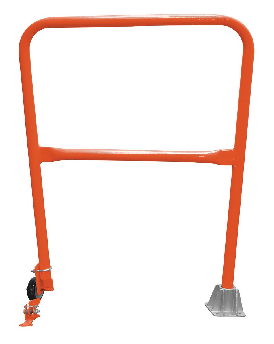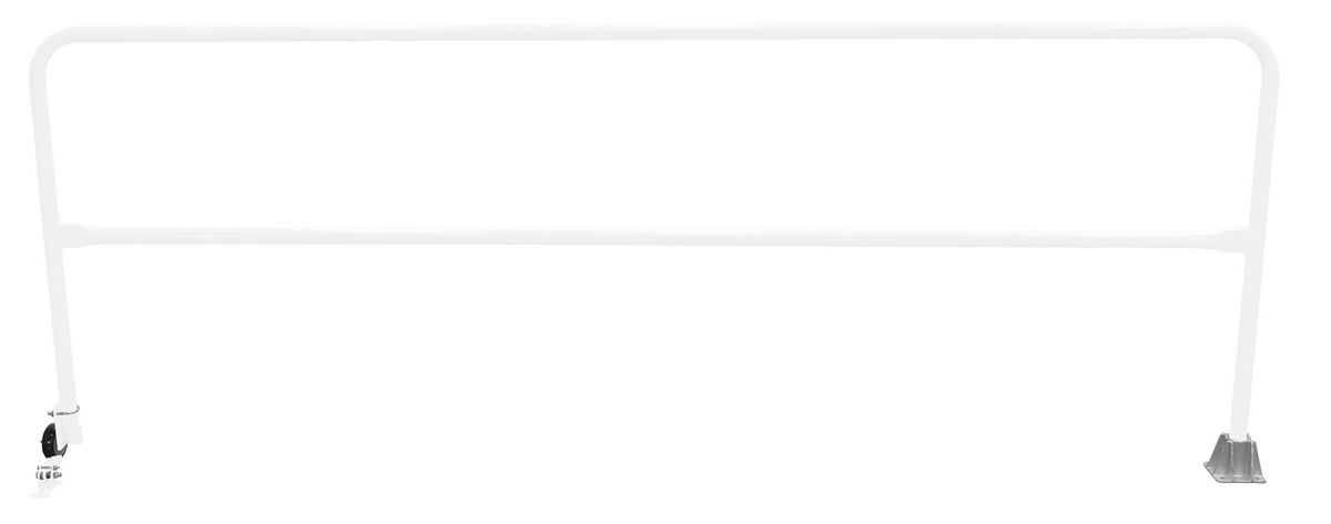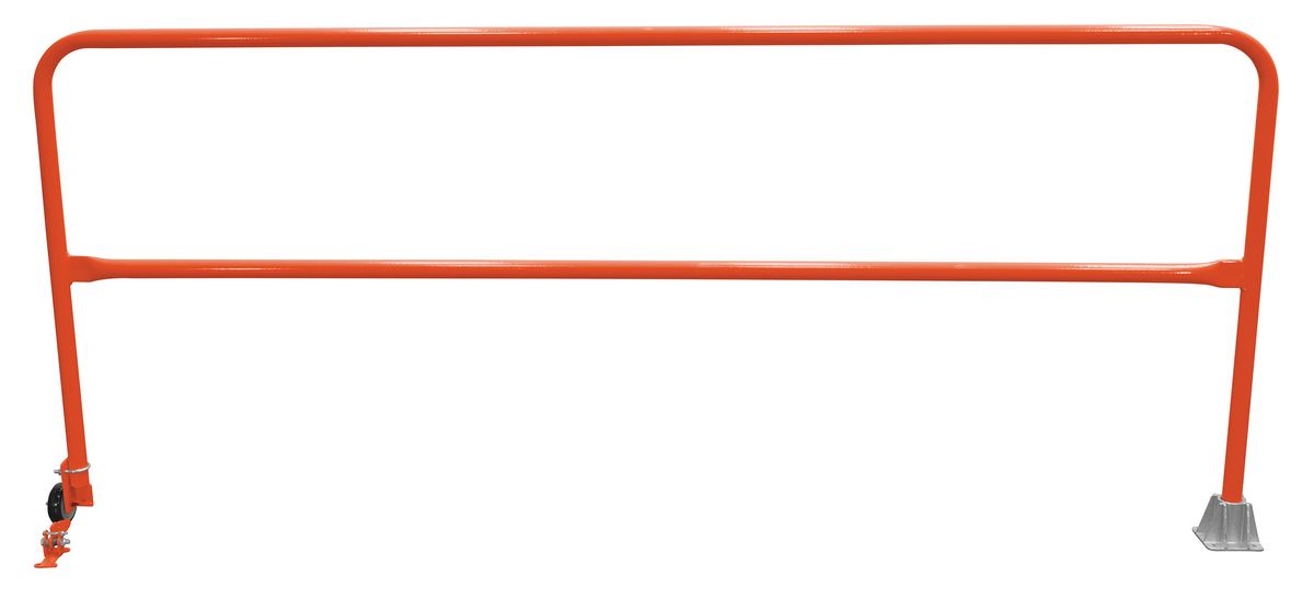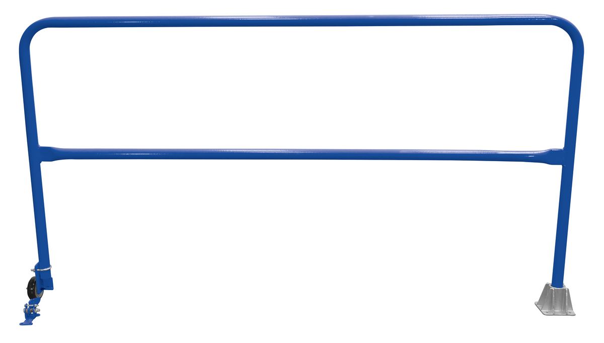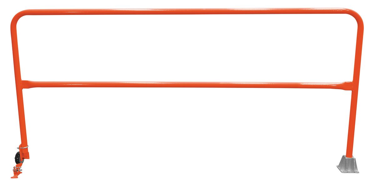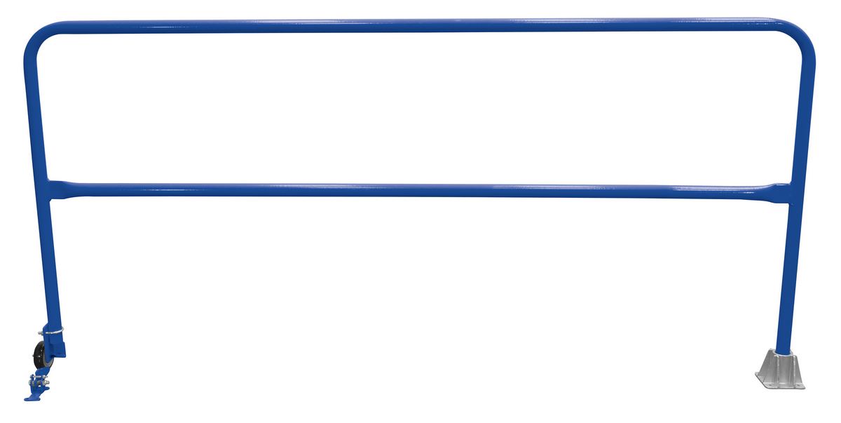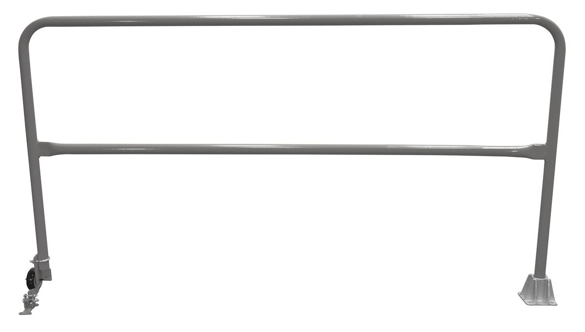 Economical Safety Swing Gates are an economical way to protect people from dock falls. Durable railings are constructed from schedule 10 pipe (1-5/8" O.D.). Units have a top rail height of 46-1/4" and a 25" mid-rail. 4" poly-on-poly wheel allows units to be swung out of the way. Cast single socket is included.