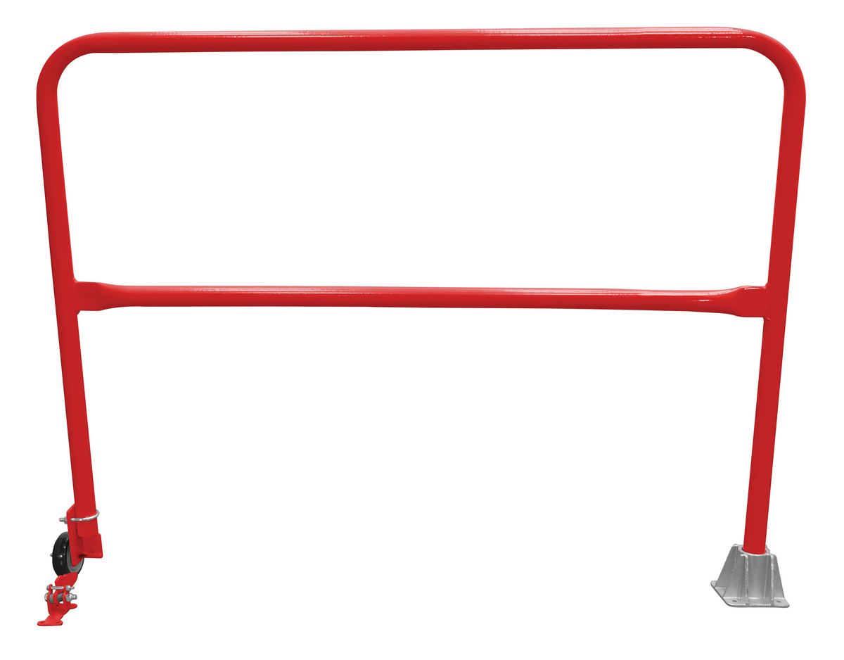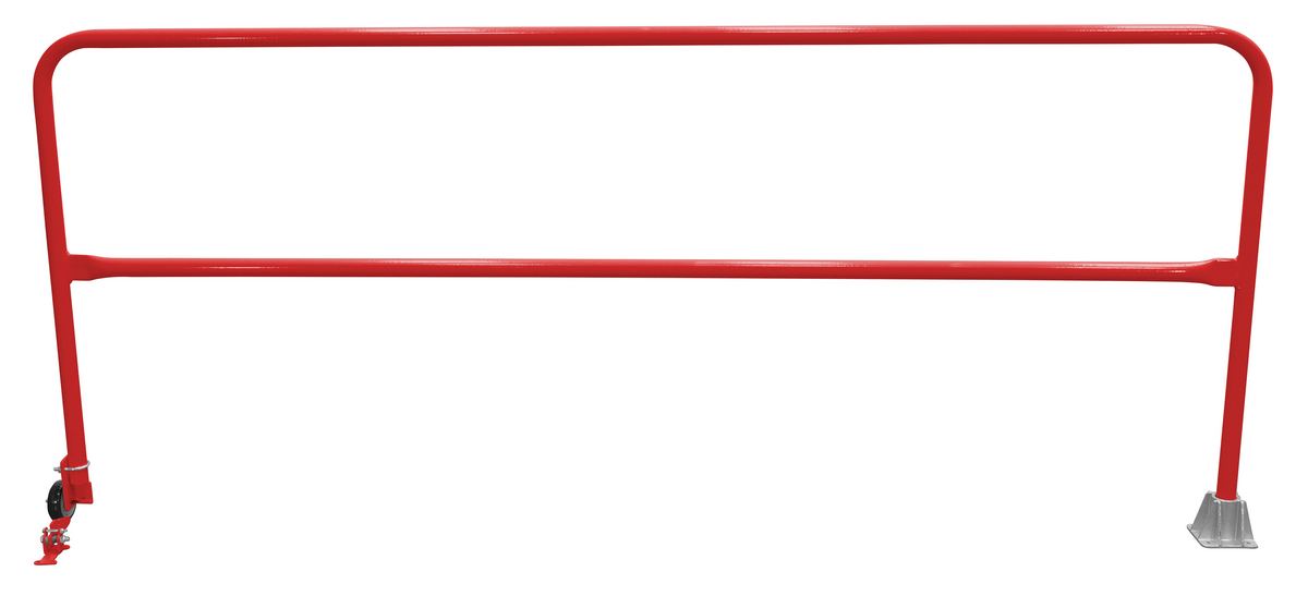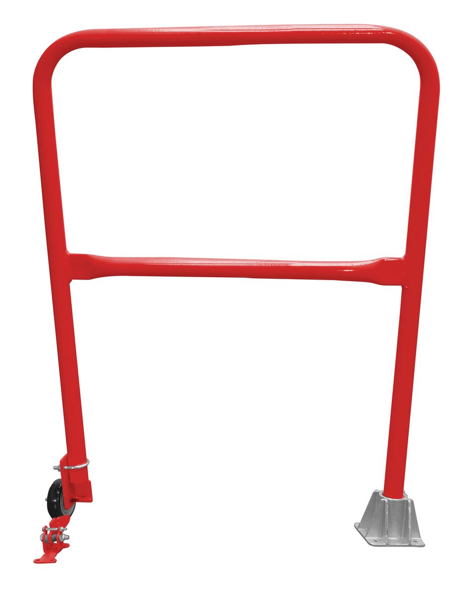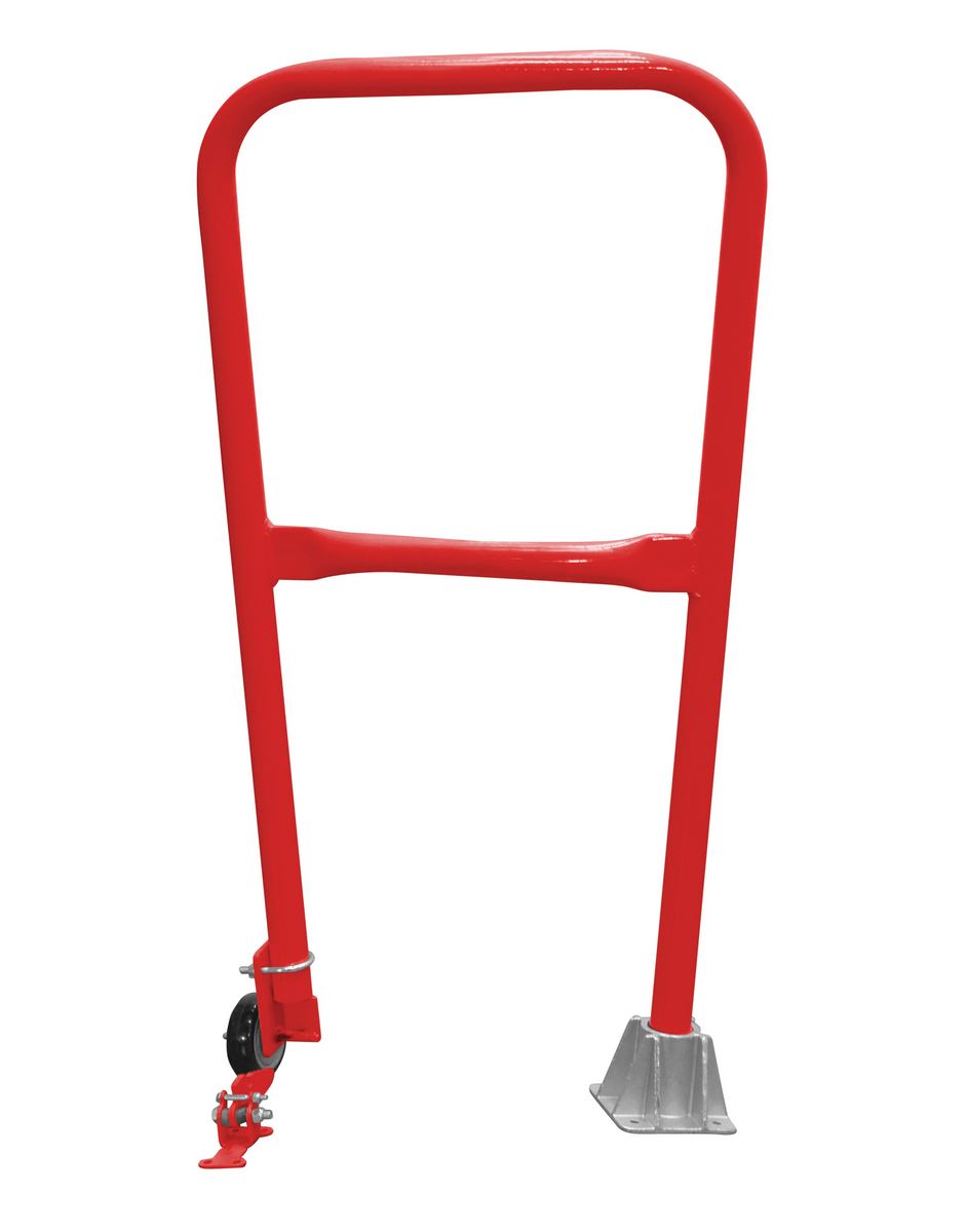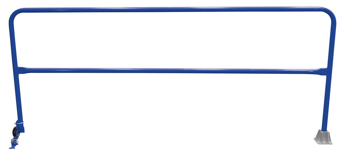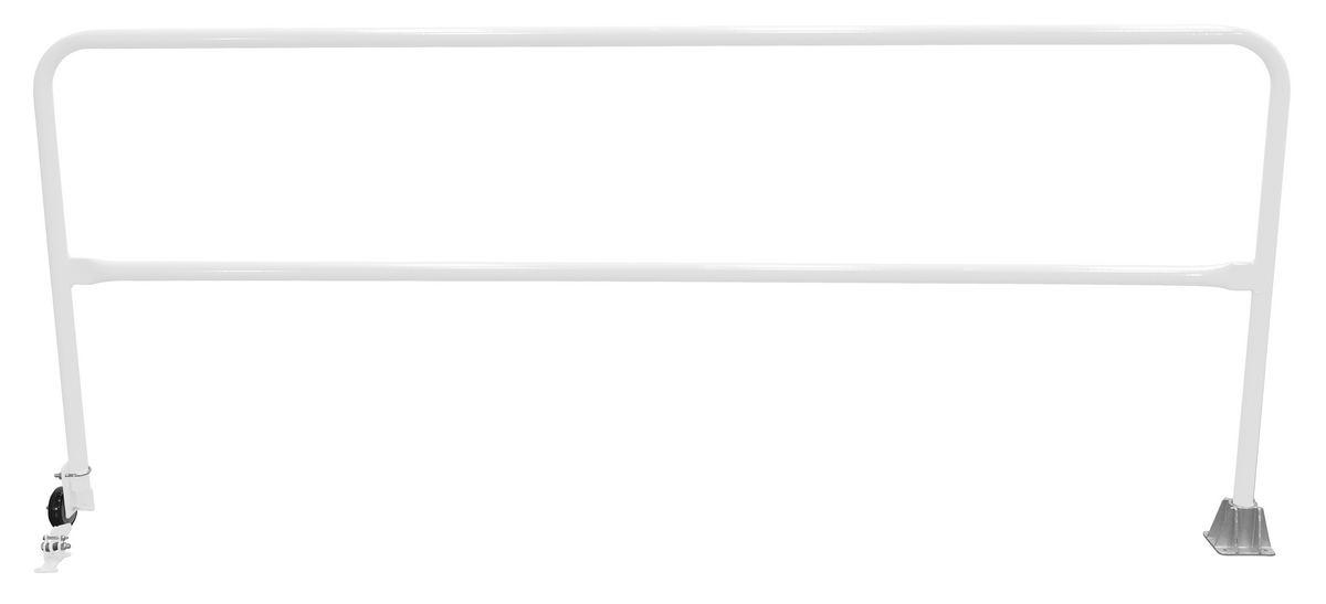 Economical Safety Swing Gates are an economical way to protect people from dock falls. Durable railings are constructed from schedule 10 pipe (1-5/8" O.D.). Units have a top rail height of 46-1/4" and a 25" mid-rail. 4" poly-on-poly wheel allows units to be swung out of the way. Cast single socket is included.