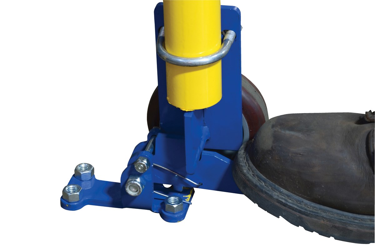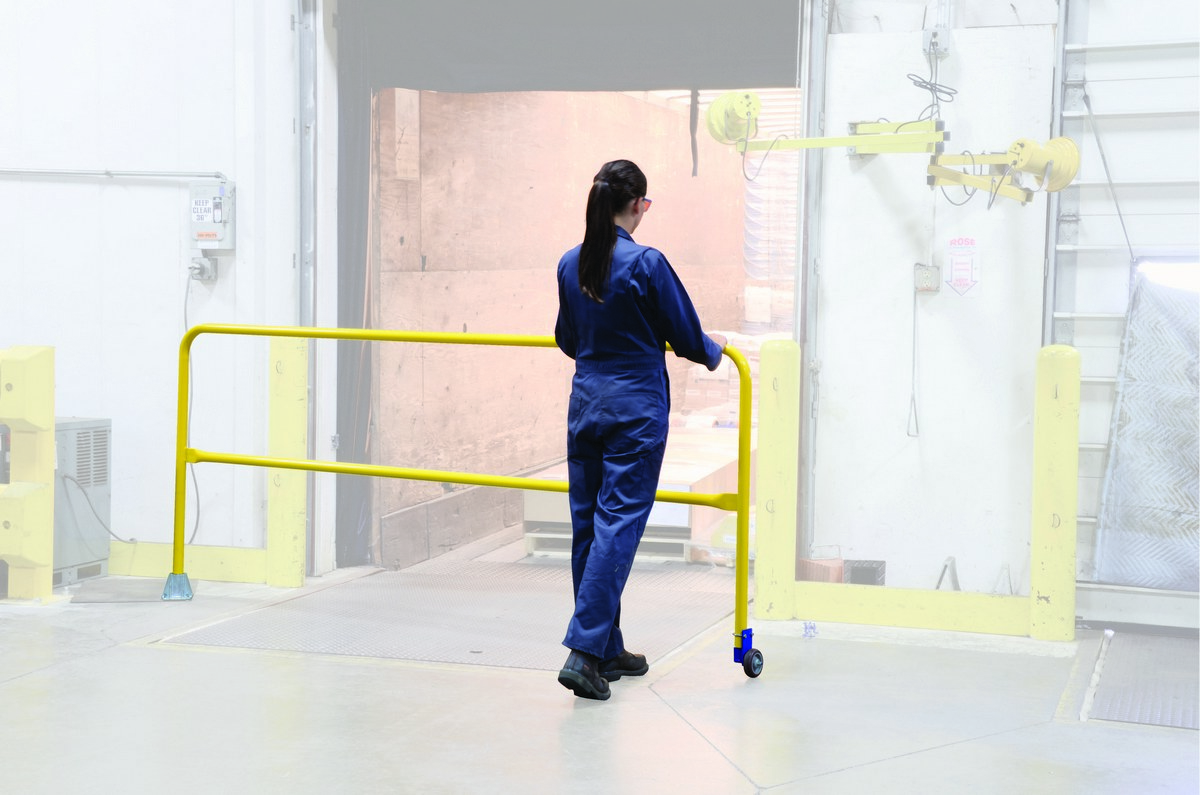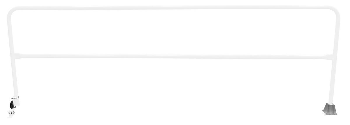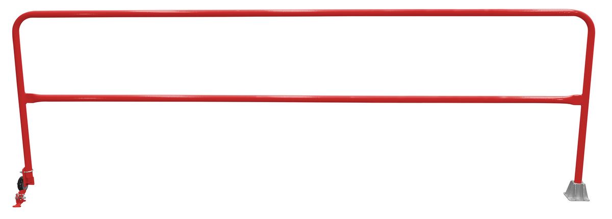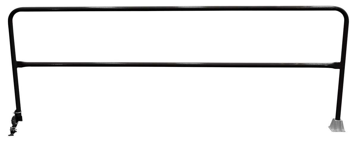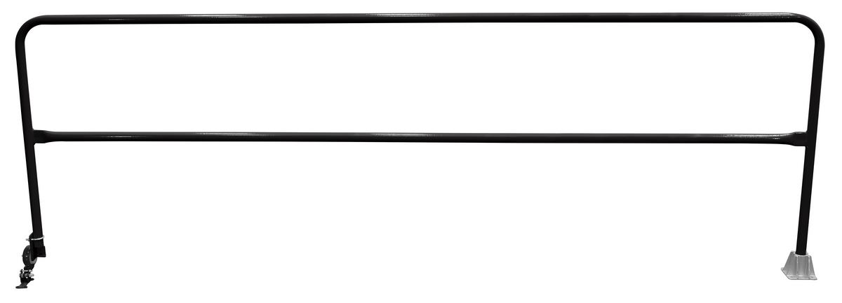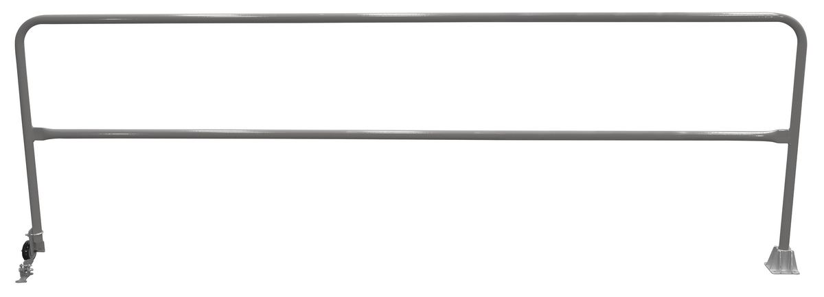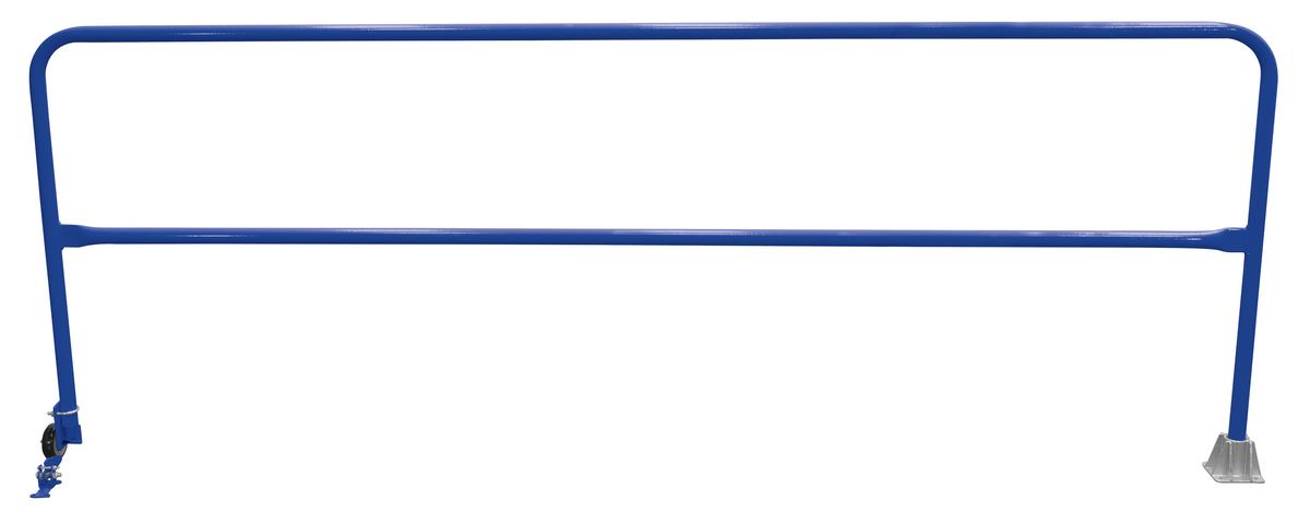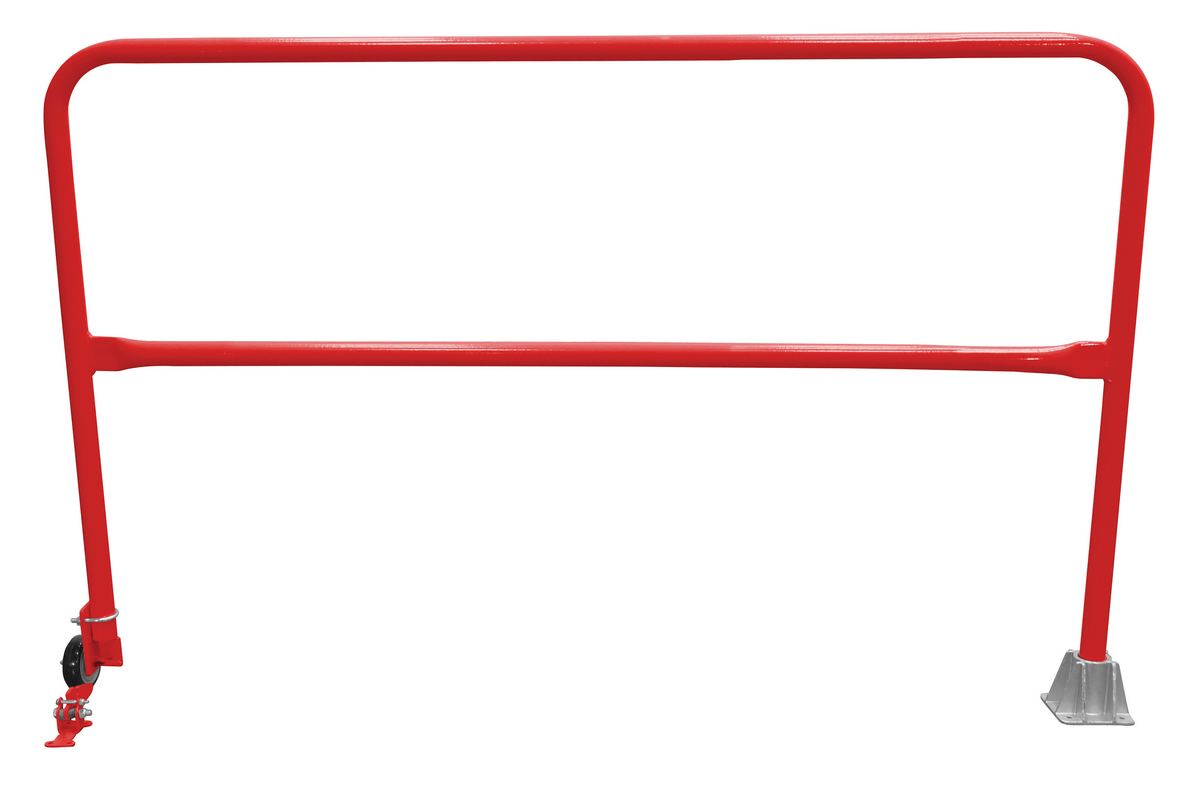Economical Safety Swing Gates are an economical way to protect people from dock falls. Durable railings are constructed from schedule 10 pipe (1-5/8" O.D.). Units have a top rail height of 46-1/4" and a 25" mid-rail. 4" poly-on-poly wheel allows units to be swung out of the way. Cast single socket is included.