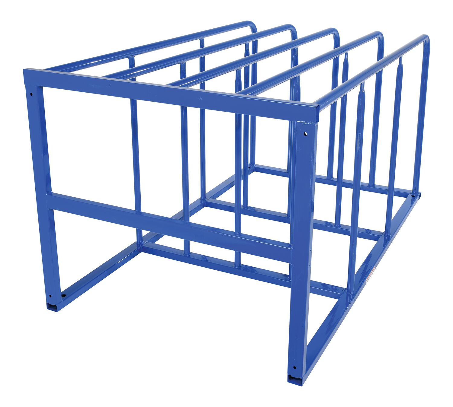 Designed for the vertical or horizontal storage of sheet goods. Standard unit comes with four bays. Intermediate floor bracing gives added steel support while keeping material off the floor. Capacity per bay is 1,500 lbs. Unit is supplied with lag down points. Powder coat finish.
