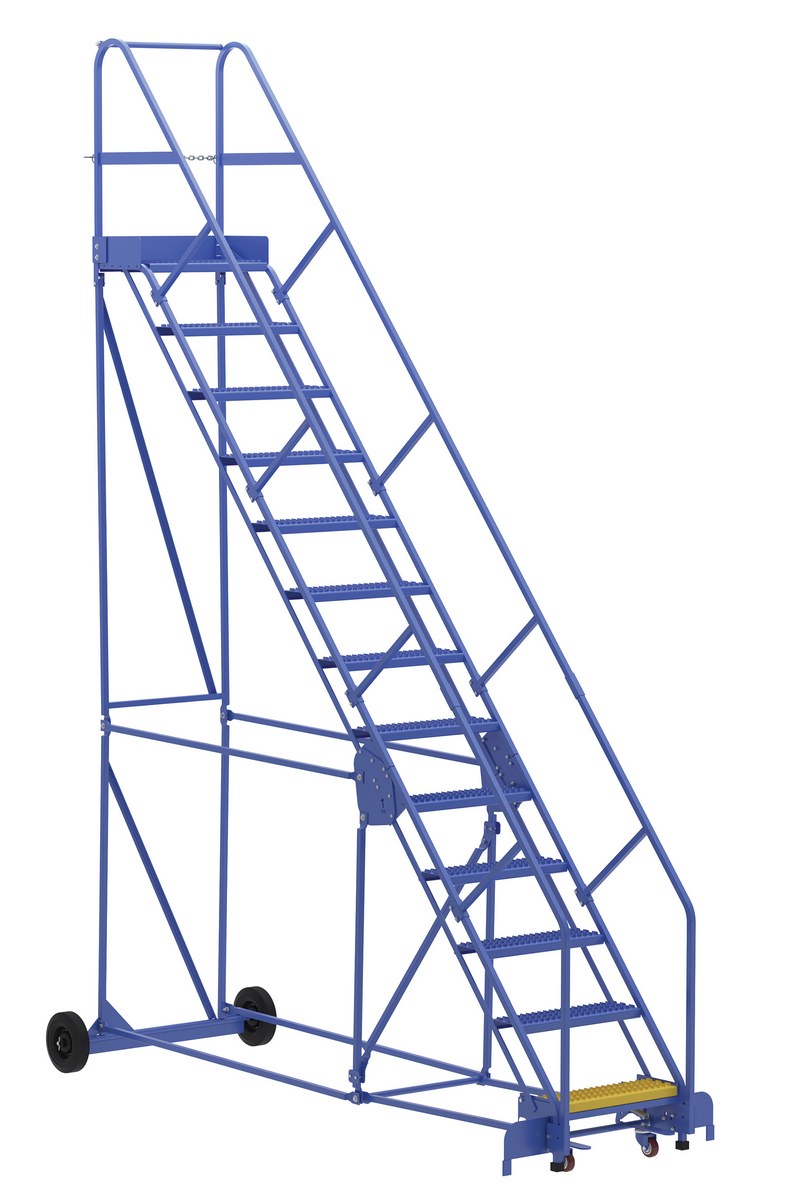 | Steel Rolling Warehouse Ladder 50 Degree 15 Grip Strut 23-9/16 In. Step Width 350 Lb. Capacity Blue | Uniform Capacity (lb.): 350 Number of Steps (qty.): 15 | 521 |