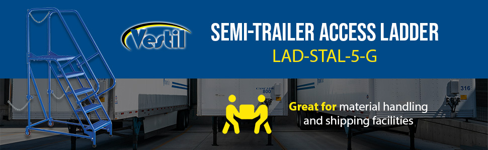 LAD-STAL-5-G LAD-STAL-5-GSteel Semi-Trailer Access Ladder 58 Degree 5 Grip Strut 24 In. Step Width 350 Lb. Capacity BlueUniform Capacity (lb.): 350