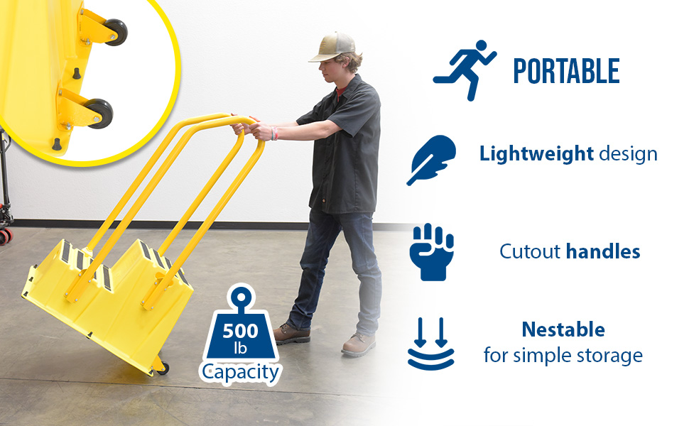 SPN-1-YL-HR-PO SPN-1-YL-HR-POPolyethylene Nestable with Handrails Casters 1 Step 500 Lb. Capacity YellowUniform Capacity (lb.): 500
