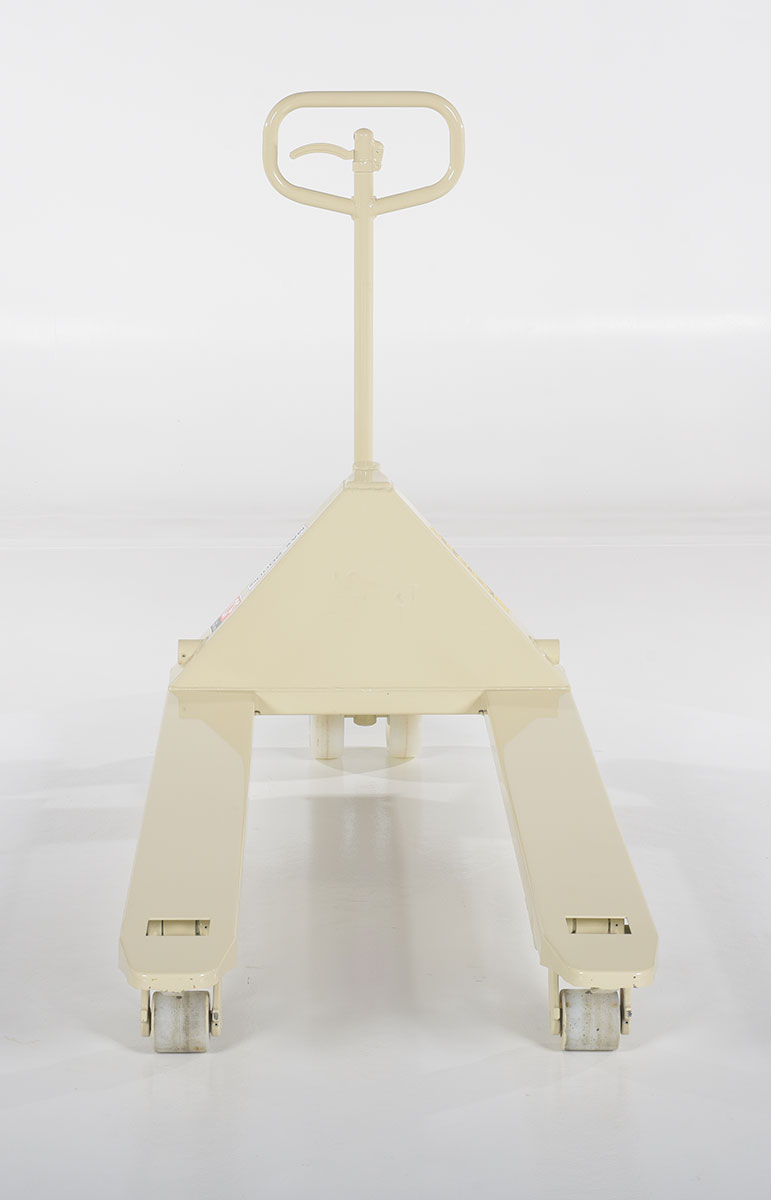 A Cold Room Hand Pallet Truck is wonderful for freezer environments. It's built to last and endure the harsh temperatures and effects of consistently cold settings. A manual hydraulic pump design maximizes functioning simplicity. Nylon wheels keep surfaces from getting marks and scuffs during movement. Powder coat finish for durability and long lasting toughness.