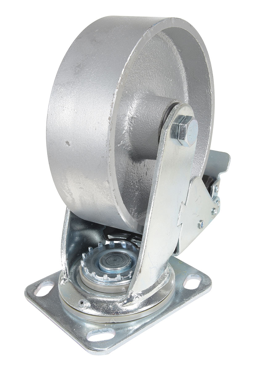 Cast iron casters are a cost efficient way of getting industrial carts and dollies back to running smoothly. The units are abrasion resistant even when transporting substantial weight. Swivel model allows the user to change directions and maintain increased control over the device. Simple attachment for immediate use upon installation. Gray tread color.