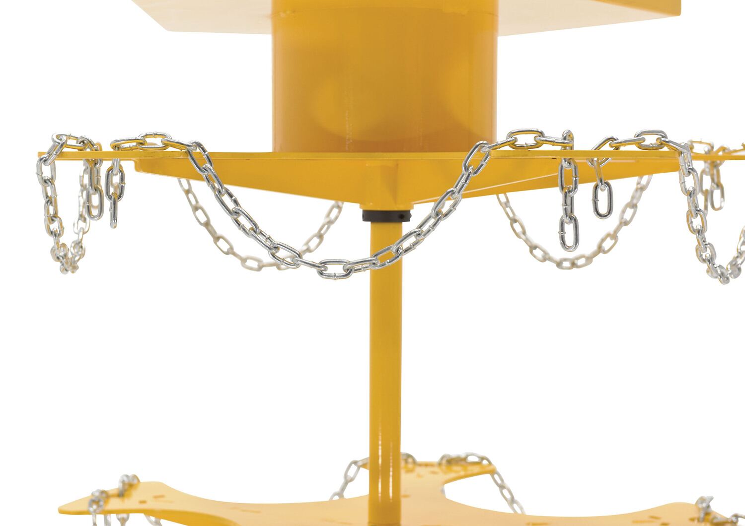 A Pail carousel rack is a quick way to transfer loaded and unloaded pails. Each bay is a perfect fit for a 5 gallon pail, while an included safety chain gives an extra level of security. The carousel design enables circular movement of each tier, allowing the user to maintain their position instead of moving to each individual pail bay. The rack is constructed of 1/4" thick powder coated steel.