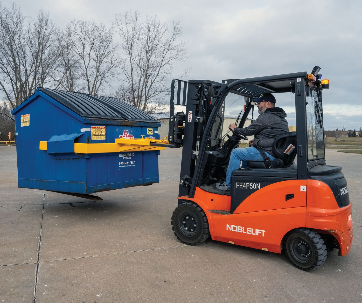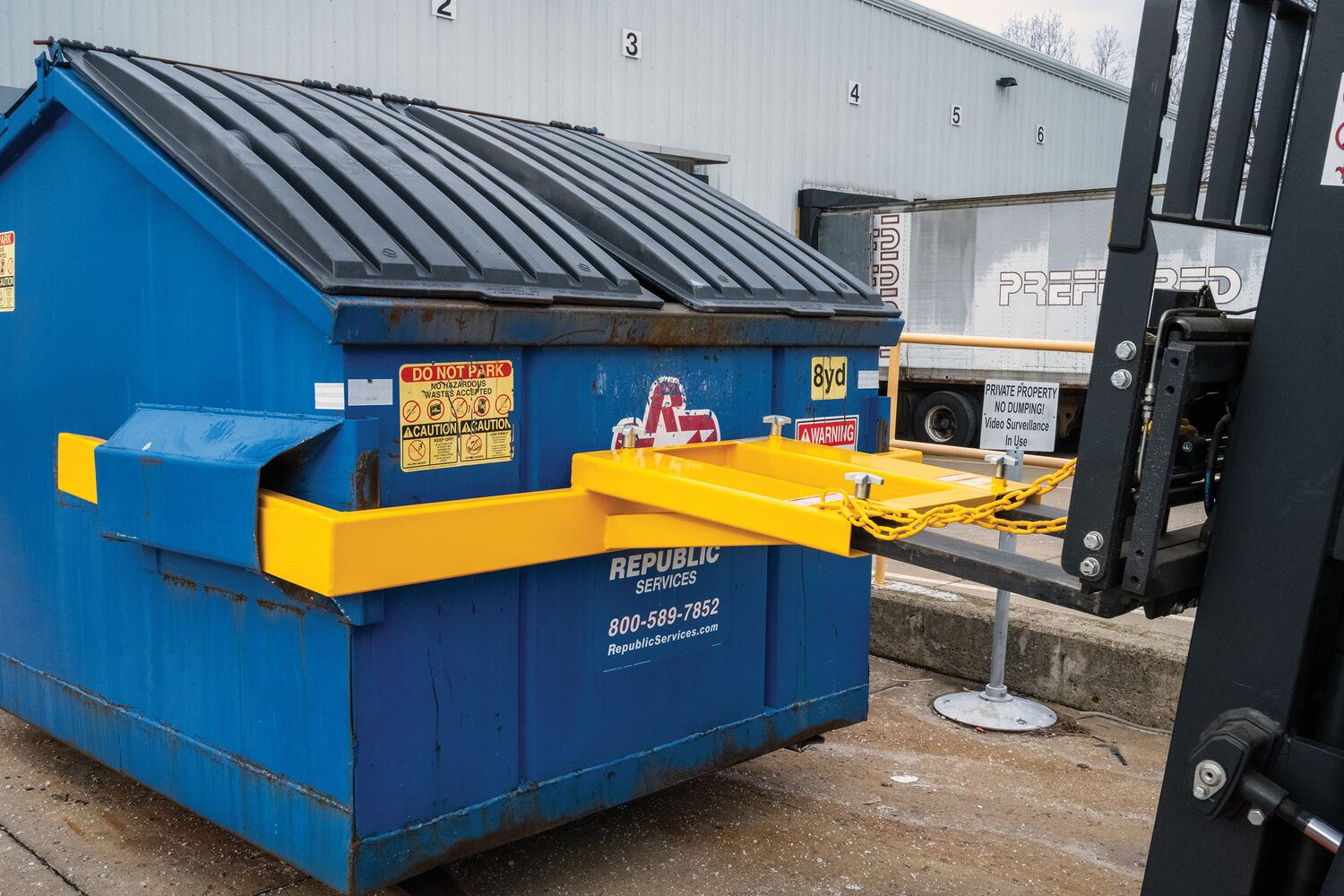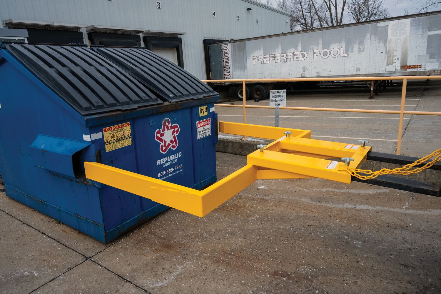 FLDM-2-72When a dumpster needs to be transported, the dumpster mover is there for the job! This unique design provides a safe and efficient way to maneuver front load dumpsters and hoppers. With forks set at a permanent 72" wide, the ability to utilize vertically fixed fork pockets has rarely been easier.