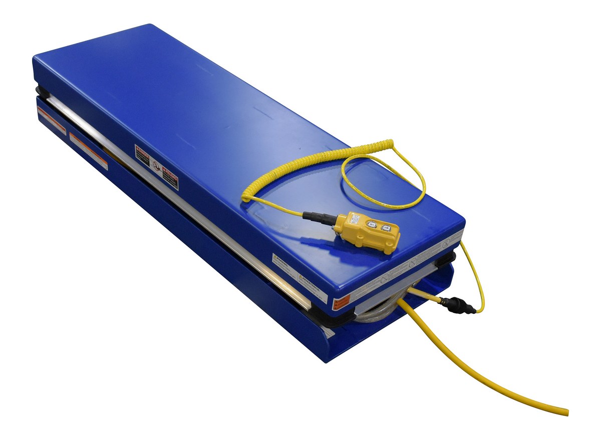 The Narrow Scissor Lift Table is used by all types of manufacturing and warehouse facilities. Safety features include: electric toe guard to protect pinch points while lowering of the table, internal safety velocity fuse to maintain platform height in an event of hose or fitting failure, maintenance prop, upper travel limit switch to stop table at maximum height, and a displacement-style hydraulic cylinders for maximum strength. It also features a pressure plated pump, manifold system, displacement style hydraulic cylinder, and a state-of-the-art lifetime lubricated bearings. 2HP, 460V, 3 Phase, 60 HZ totally enclosed motor standard, other voltages available.
