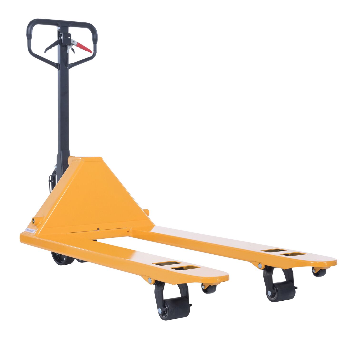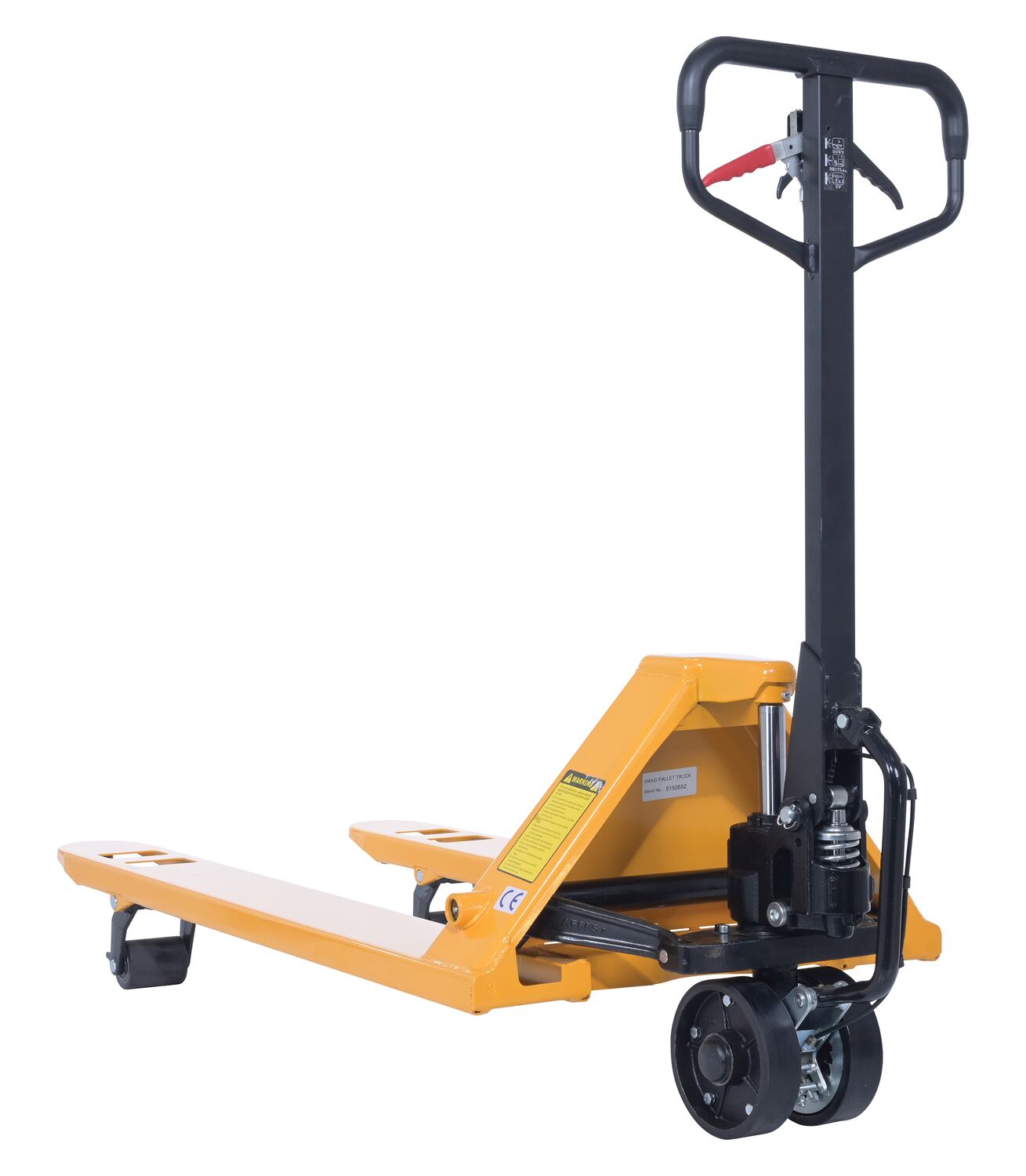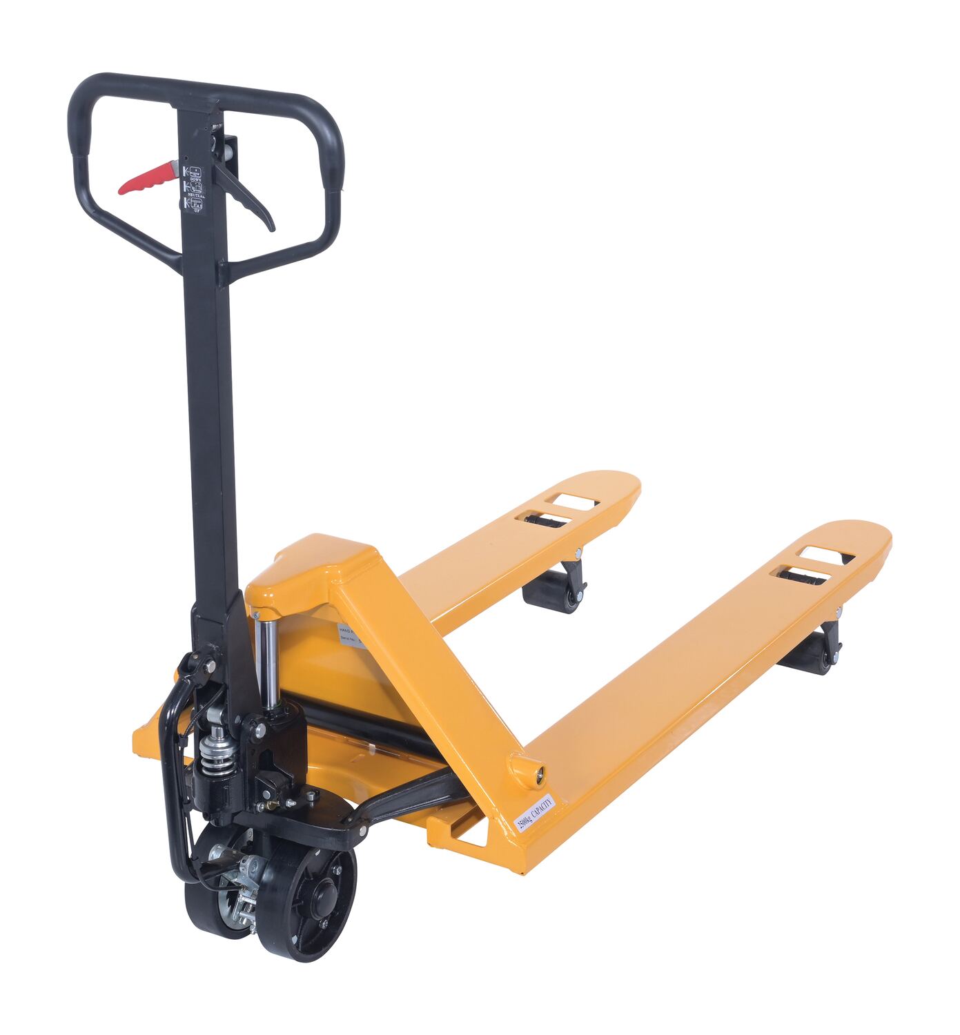 PM5-2748-PA-YAnyone who has operated a fully loaded pallet truck knows the most strenuous part is starting the wheels rolling. These Pallet Trucks solve the back breaking problem.