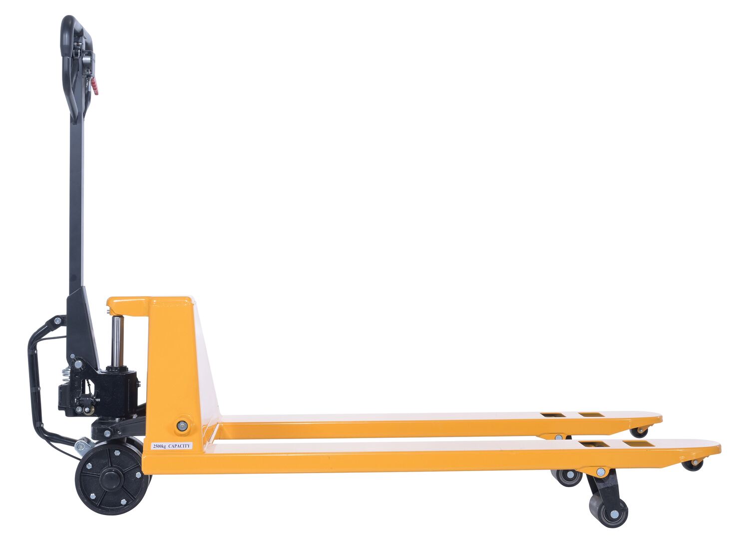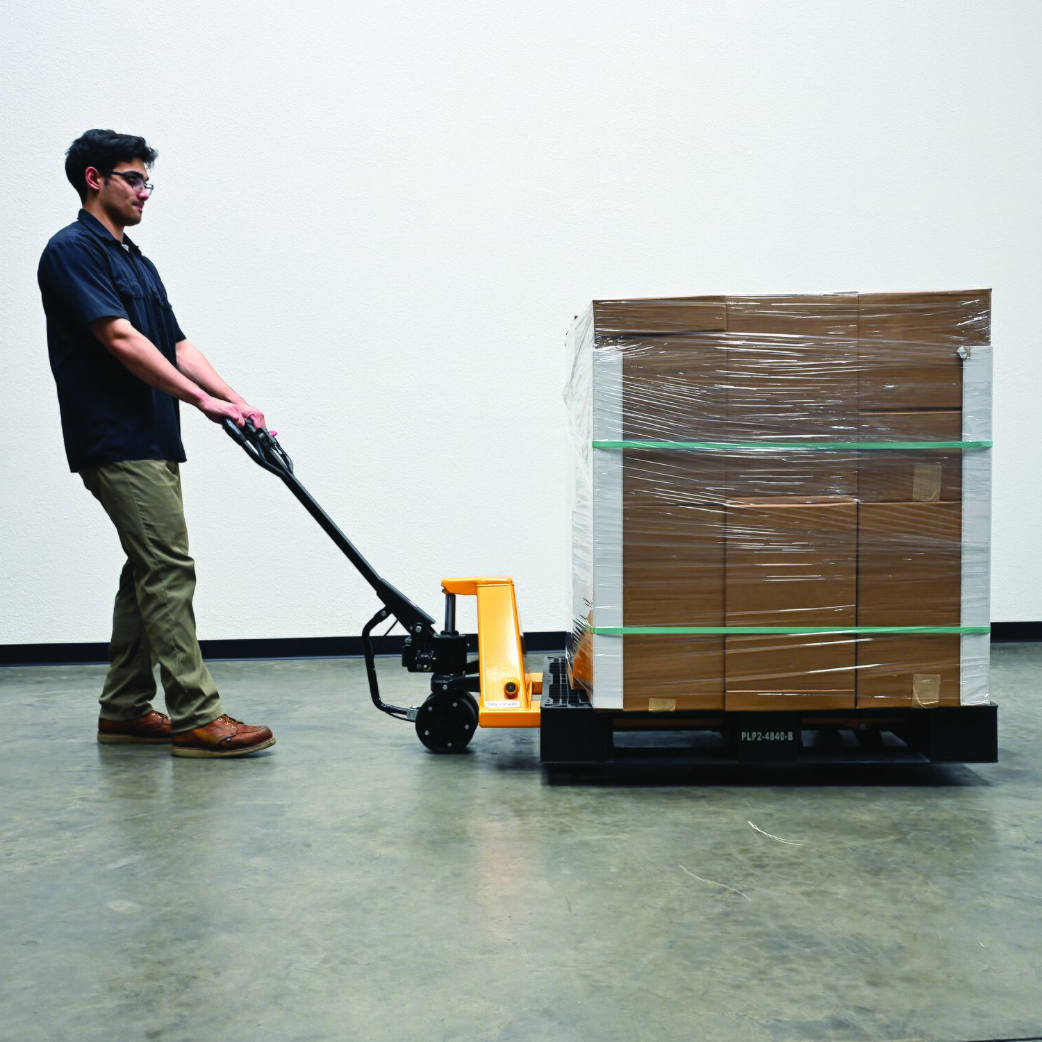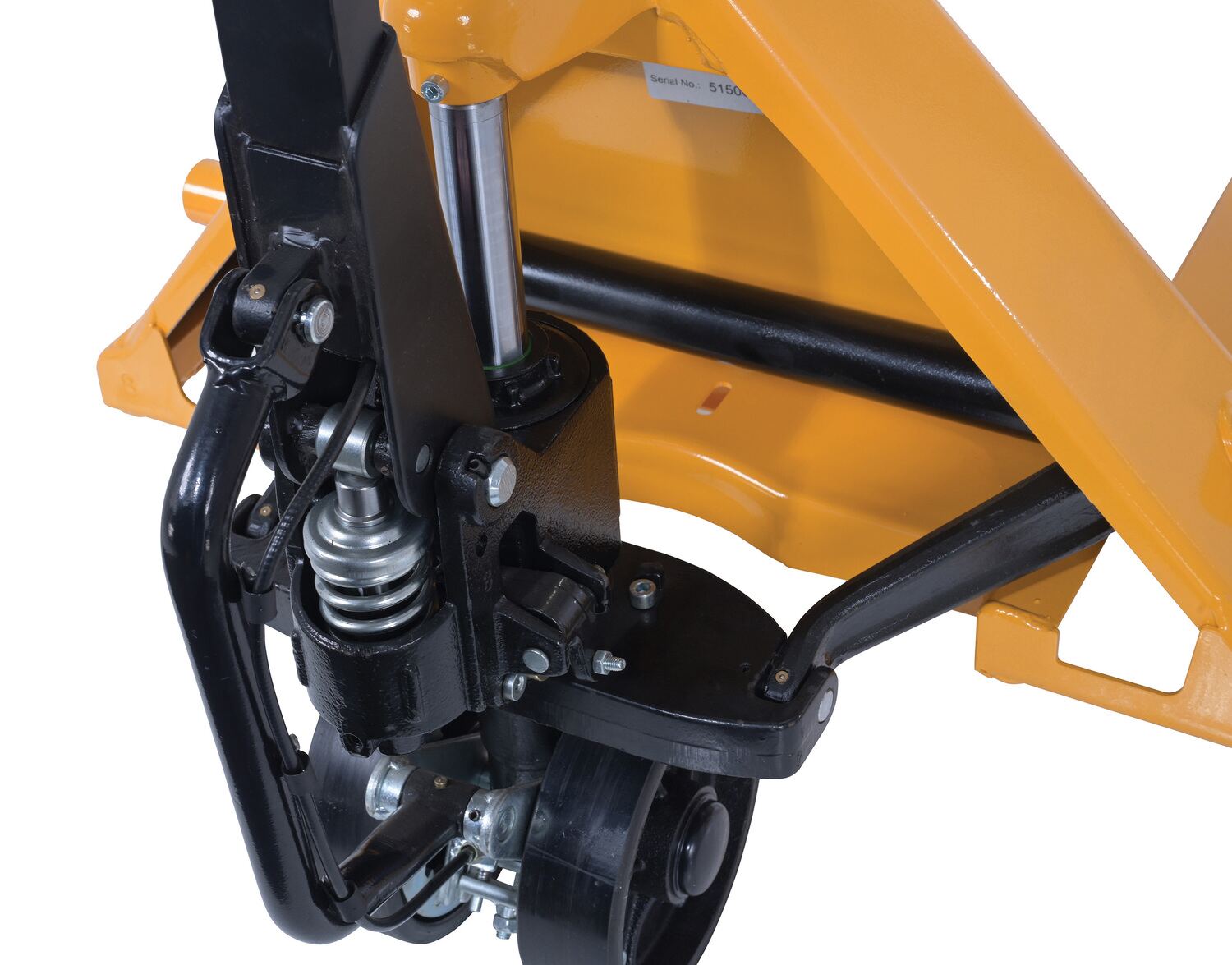PM5-2748-PA-YAnyone who has operated a fully loaded pallet truck knows the most strenuous part is starting the wheels rolling. These Pallet Trucks solve the back breaking problem.