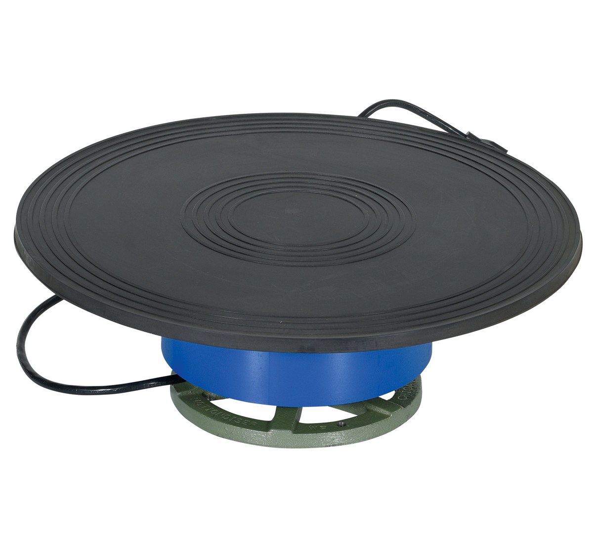 The Powered Turntable helps keep tedious material handling at your fingertips. Easy, smooth clockwise rotation for hundreds of applications. Rotation speed is non-adjustable. Rugged 5/16" steel plate construction. These Powered Turntables are wired to 115V, 1 phase. An on/off selector switch incorporated in a 3 foot cord provides power to the unit. A side skirt to protect items from getting into the rotating mechanism is standard.