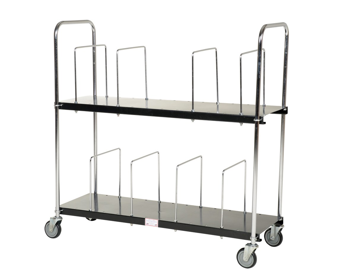 Model CTPT-1844-CK features one shelf with adjustable box dividers ideal for oversized boxes. The seven dividers can be positioned along the cart deck in any of seven (7) pre-drilled positions.