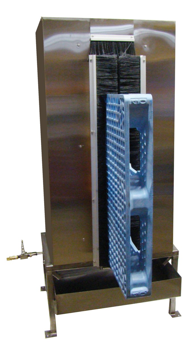 Our Plastic Pallet Washer cabinet allows you to rinse, clean and remove debris that can accumulate on pallets. Constructed entirely of stainless steel, simply plug in your existing pressure washing hose, using the snap connector provided. There is minimal installation requirements, which require a connection to a minimum of 6 GPM @2500 PSI. Stainless steel pipe with (3) 65 degree spray nozzles on each side of the cabinet, with (1) 65 degree spray nozzle on top. Since there are no moving parts, this washer cabinet is perfect for low volume applications involving slightly soiled pallets.