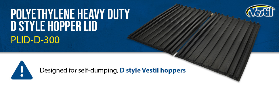 PLID-D-300 PLID-D-300Polyethylene Heavy Duty D Style Hopper Lid (Use with 3 Cubic Yard Hoppers) BlackUse With (cu. yrd.): 3
