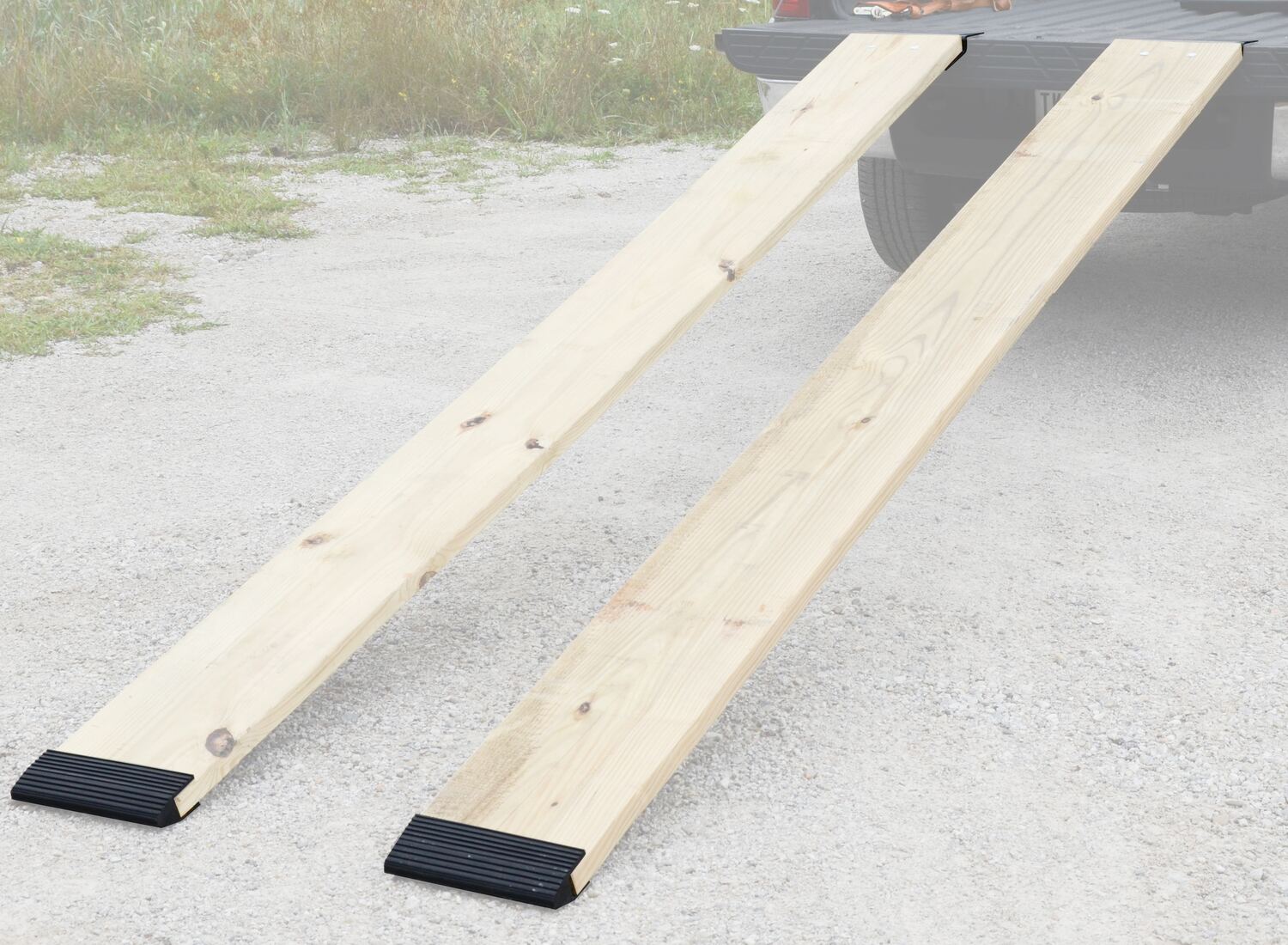 Kits allow for building wooden ramps using common lumber. Each kit includes two steel end plates and rubber bottom tips. Installation hardware is included. Drilling required for installation. Lumber/boards are not included.