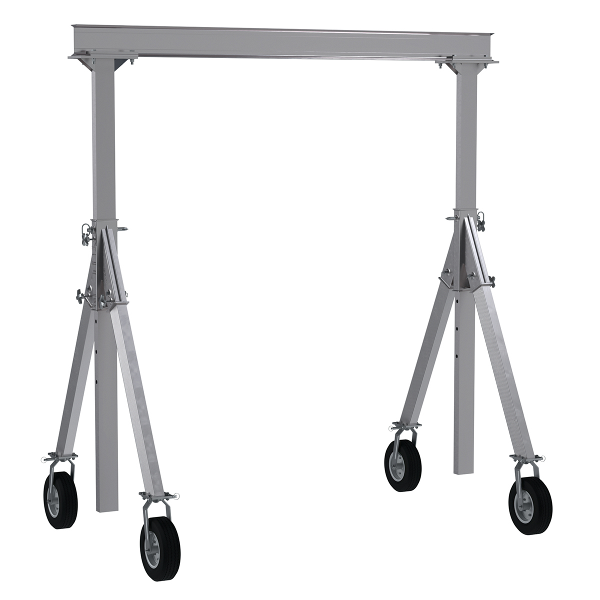 AHA-4-10-8-PNU AHA-4-10-8-PNUAluminum Adjustable Height Gantry Crane with Pneumatic Rubber Casters 10 Ft. Wide x 8 Ft. Max Usable Height 4,000 Lb. Capacity SilverUniform Capacity (lbs): 4000