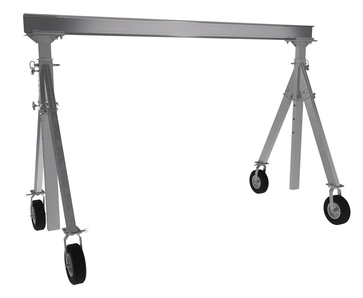 AHA-15-8-10-PNU AHA-15-8-10-PNUAluminum Adjustable Height Gantry Crane with Pneumatic Casters 8 Ft. Wide x 10 Ft. Max Usable Height 1,500 Lb. Capacity SilverUniform Capacity (lb.): 1500