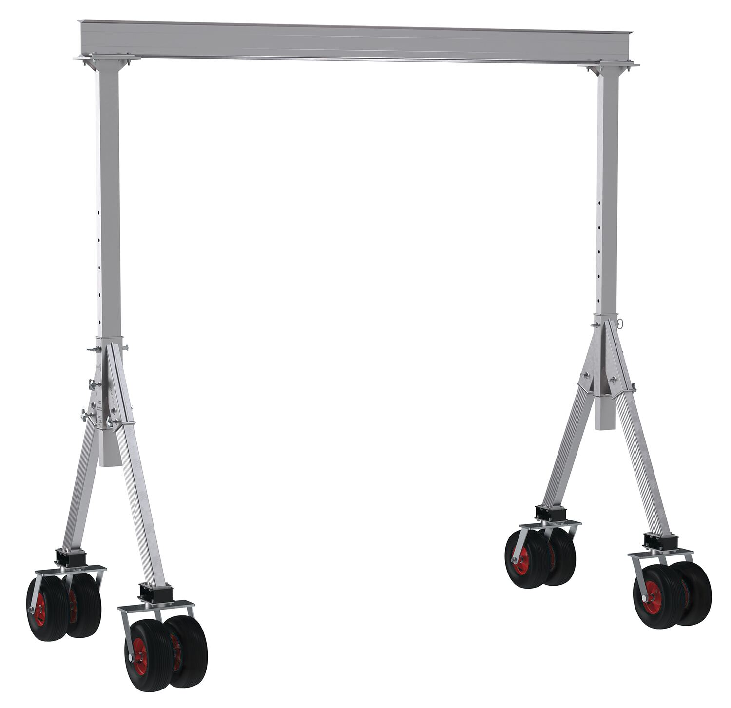AHA-15-10-10-PNU AHA-15-10-10-PNUAluminum Adjustable Height Gantry Crane with Pneumatic Casters 10 Ft. Wide x 10 Ft. Max Usable Height 1,500 Lb. Capacity SilverUniform Capacity (lb.): 1500