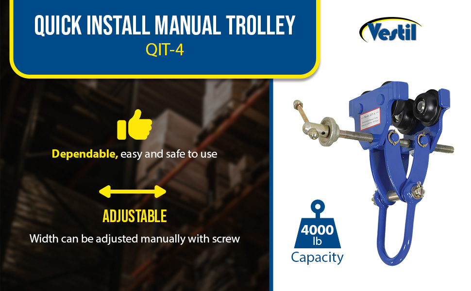 QIT-4 QIT-4Steel Quick Install Manual Trolley 6-3/4 In. x 14-1/8 In. x 12 In. 4000 Lb. Capacity BlueUniform Capacity (lb.): 4,000