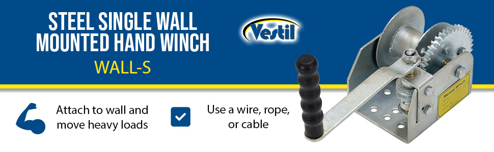 Wall Mounted Hand Winches Pulling devices that use a wire, rope or cable to move heavy loads. Constructed of steel worm gear drives with zinc plated finish. Pinion gear shaft with lubricated down bushings provide smooth operation and long life.