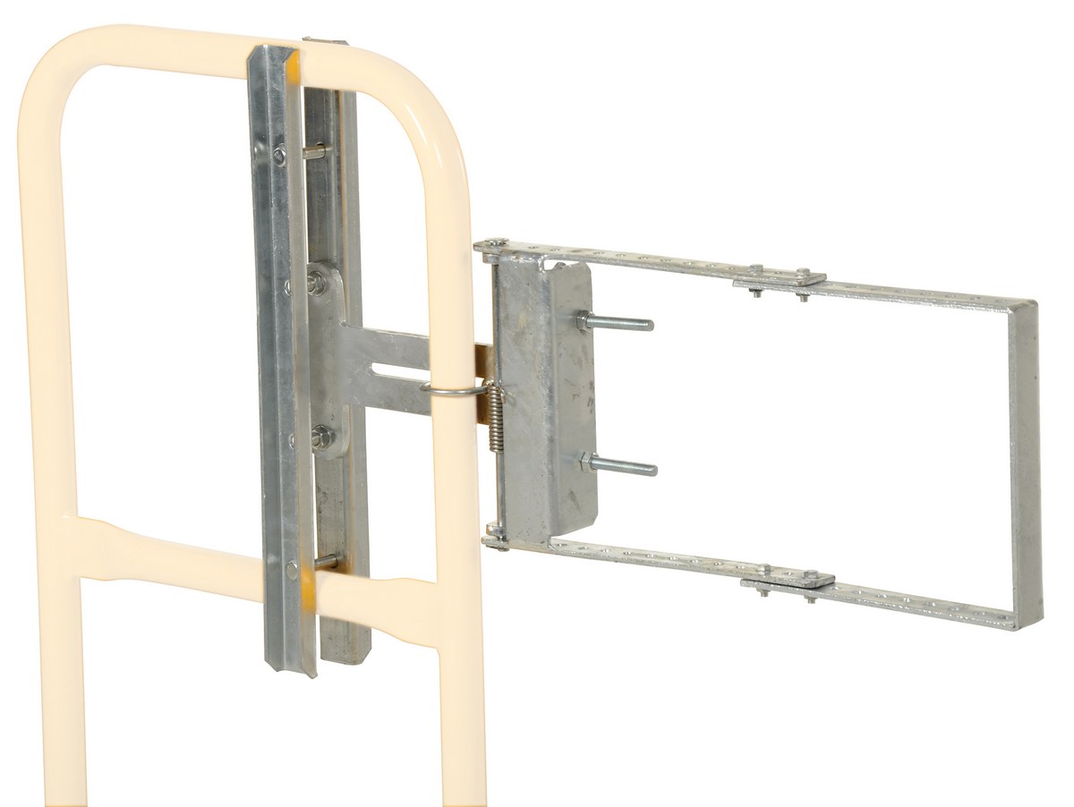 • Spring-loaded safety gate protects openings in railings