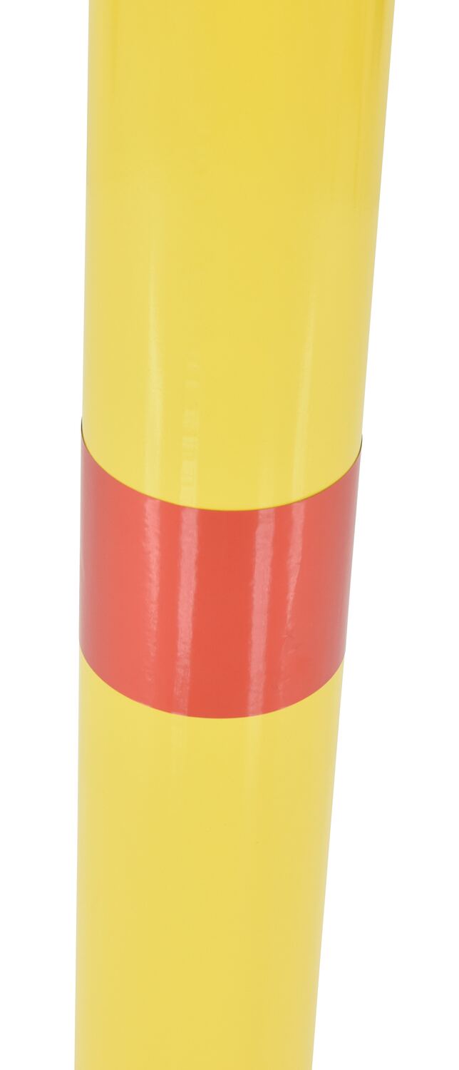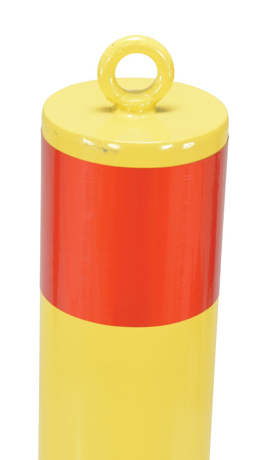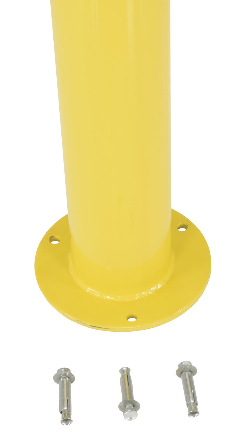 Surface mounted unit is easy to install. Top mounted eyelets can be used with chains or rope to create a barrier. UV resistant high visibility bright yellow baked-in powder-coated toughness. Can be used in conjunction with our Fold Down Bollards, series PARK-P-FD. Reflective bands and (3) 3/8" x 3" concrete anchors for securing bollards to concrete included.