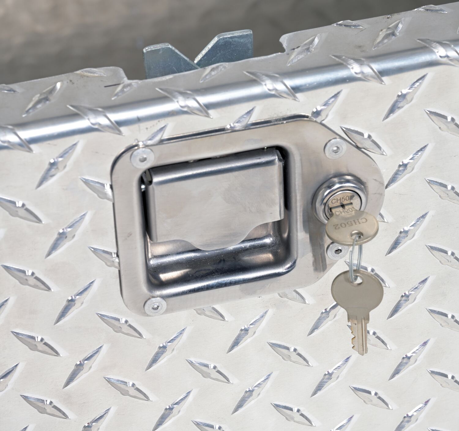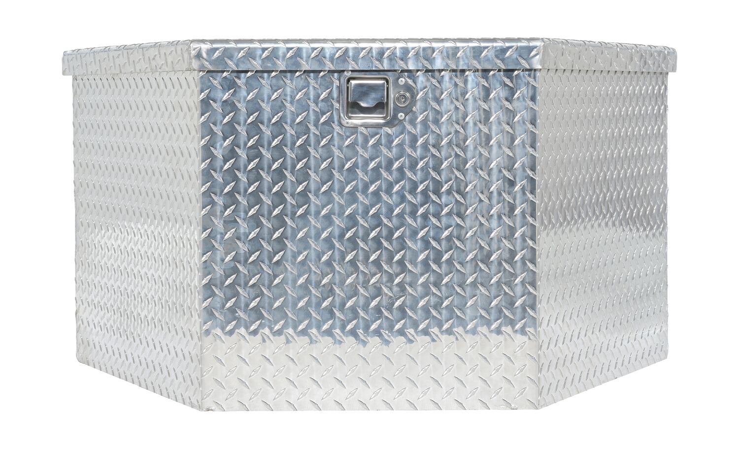 This toolbox is specifically designed to be used on the tongue of fifth wheel trailers. So often this space is never utilized fully or all together wasted. With this specifically in mind, this toolbox is built to fit directly into that empty fifth wheel space. A narrow front end with a wide back allows the user to secure a large variety of items and protect them from the outside elements.