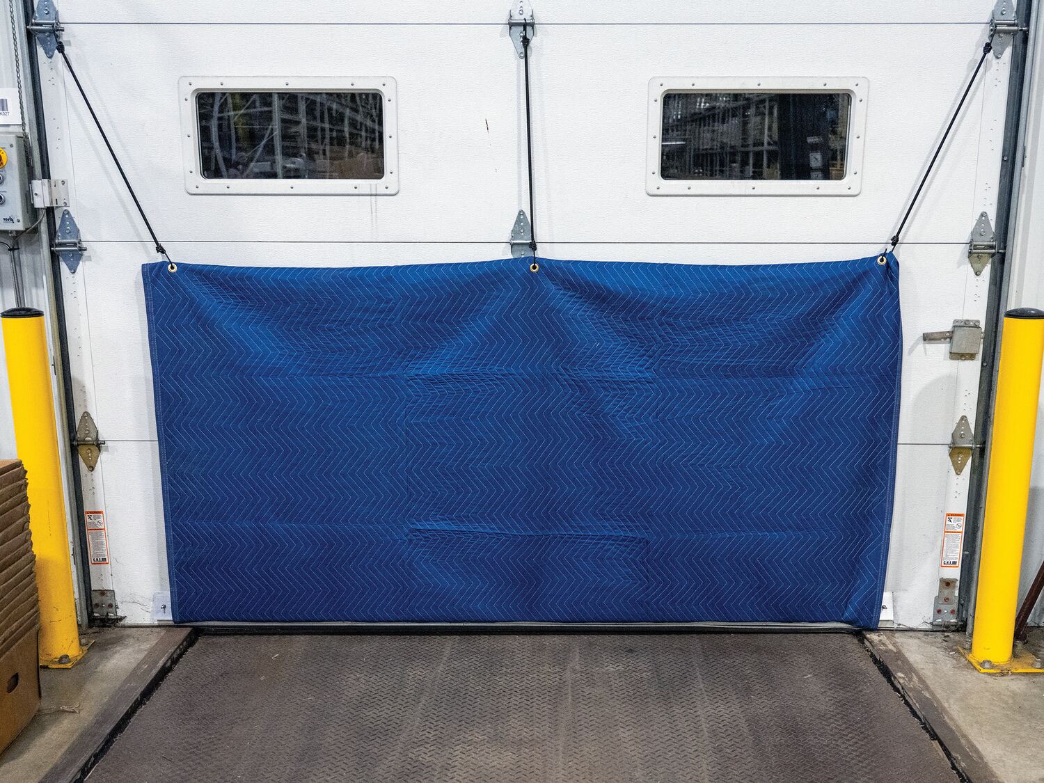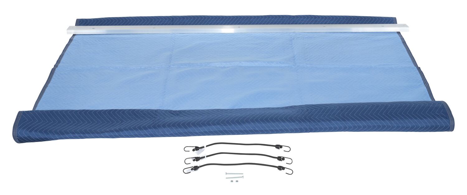 Help your company go Green by driving down utility bills. The Dock Leveler Insulation Blanket helps improve heating efficiency while using less energy. Prevents cold air from entering your warehouse from cracks that surround the dock door and leveler. The blanket includes aluminum extrusion, anchors, and hangers that fit most standard doors. The hangers allows for a secure raised blanket position. The blanket will pay for itself many times over by controlling heat loss.