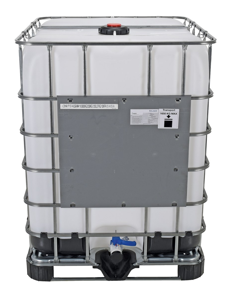 Space-savings storage containers are great for multi-trip applications. Designed for storage of both hazardous and nonhazardous contents (not to be used with flammable material such as gasoline). Easy to fill, stack and load. Hot-dipped galvanized steel cage is consistent with Food Code requirements for use in non-direct food contact environments. FDA compliant steel cage is hot-dipped galvanized. Pallet base is made from both steel and plastic. Includes inner storage tank made from white plastic with UV-blocking additive. Includes 2" butterfly valve with a durable, synthetic fluorocarbon rubber gasket. Top fill cap is 6" diameter with 2" bung. Complete unit is UN approved. UN 31HA1/Y. Both units are DOT certified. |