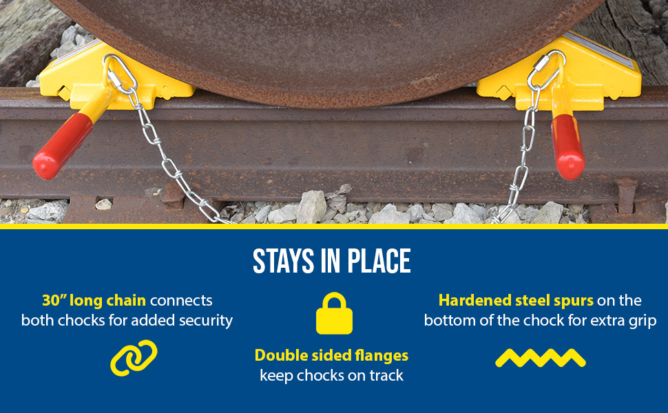 SRC/FRC SRC/FRCSteel Single Rail Chock with Flag Rail Chock 30 In. Long Chain YellowFlag Handle Length (in.): 36
