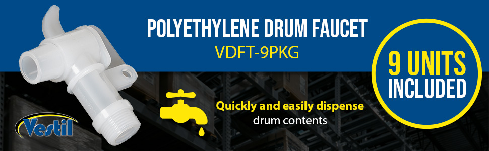 VDFT-9PKG VDFT-9PKGPolyethylene Drum Faucet Non-Adjustable (9) 3/4 In. Bung WhiteBung Size (in.): 3/4
