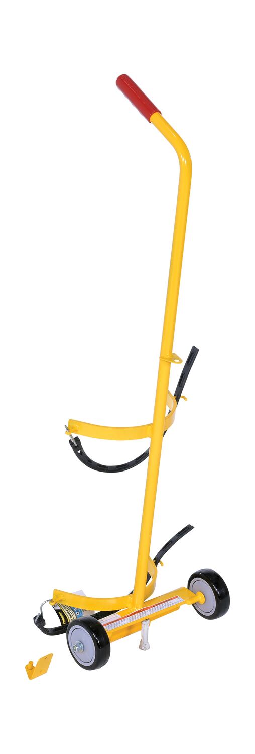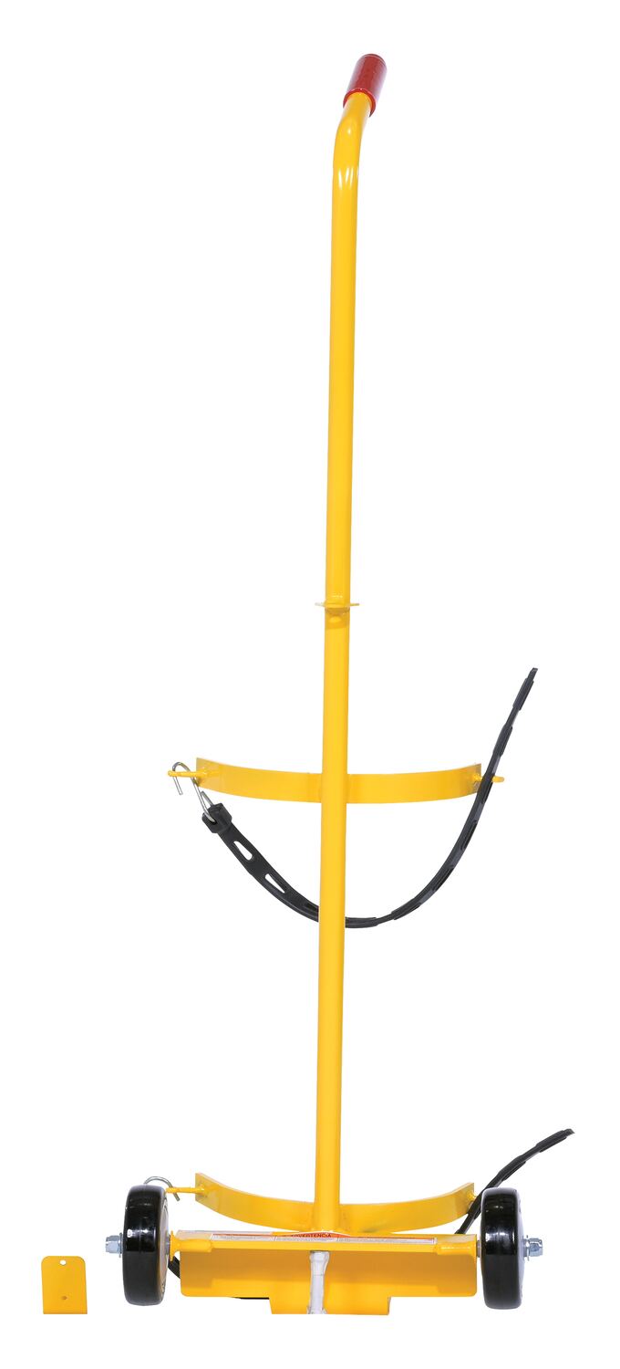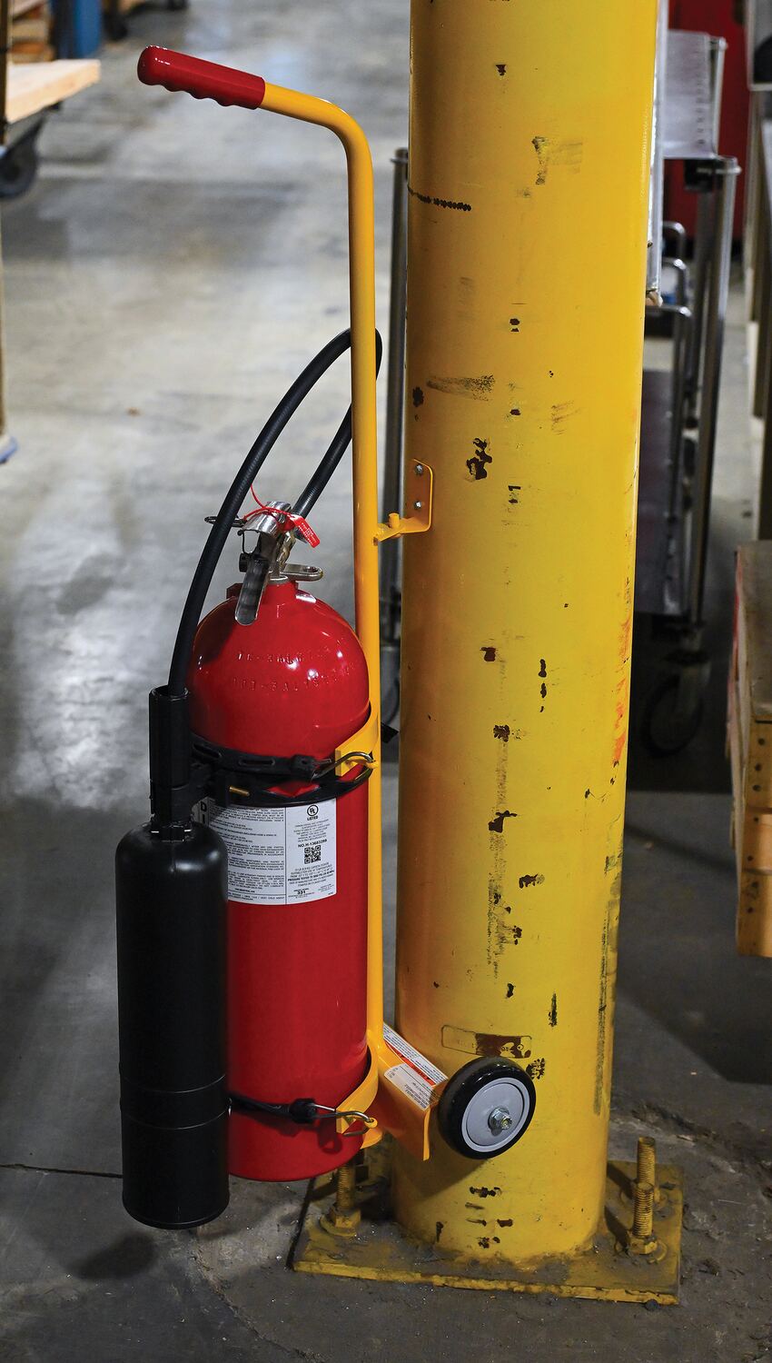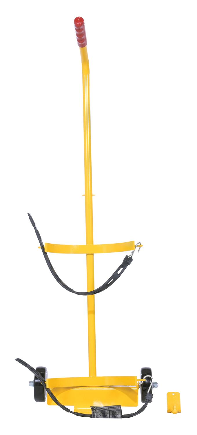 The Fire Extinguisher Carrier, model FEC-1, is designed for easily transporting your fire extinguisher up to 8" in diameter. Includes two (2) heavy duty adjustable rubber straps. Sturdy handle with rubber grip and poly casters for tilt-n-go portability. Welded steel construction with yellow baked-in powder-coat toughness. 4" x 2" stabilizing plate keeps unit upright when empty and helps retain extinguisher. Adjustable EPDM restraining straps keep extinguisher secure and allow for quick access. Wall mount bracket included to store the extinguisher off the floor.