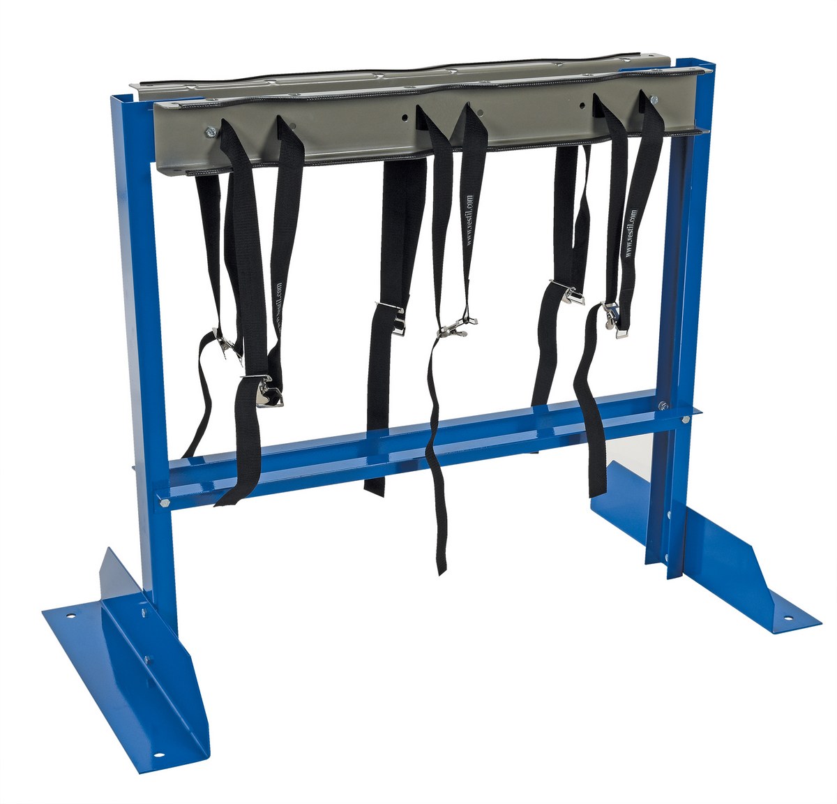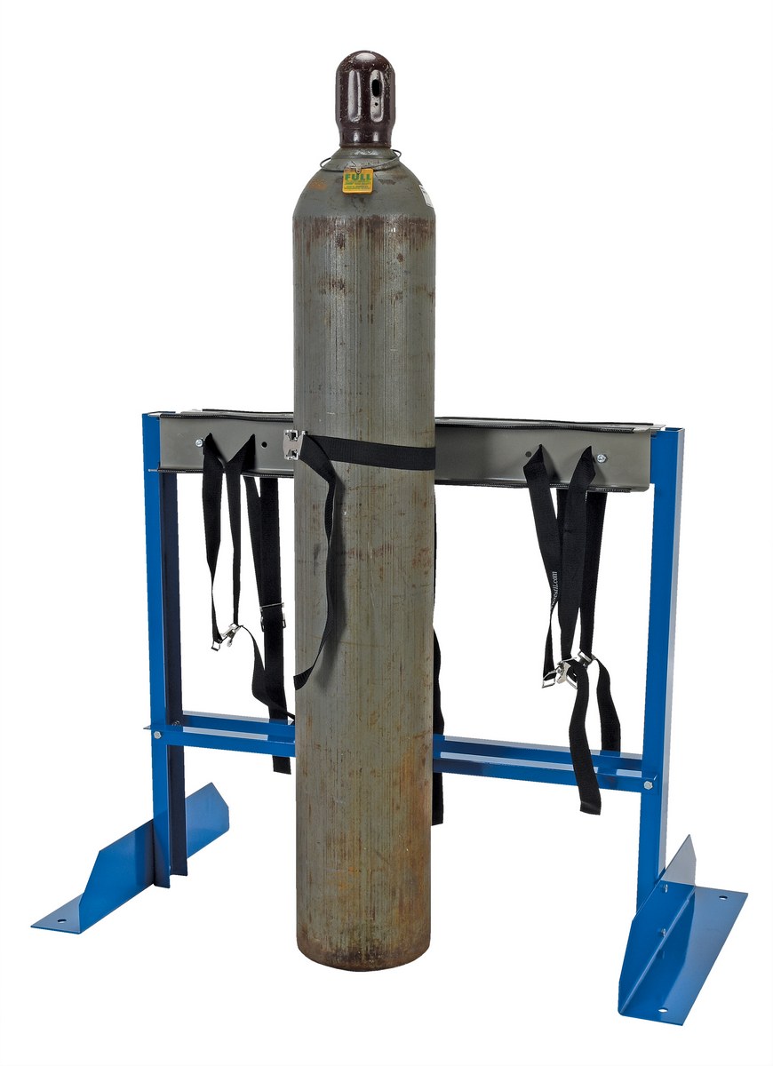 Our Cylinder Bracket Stands allow for storage of cylinders in the vertical position. The straps are included for securing the cylinders to the stand. The CB-ST models have pre-drilled mounting holes for attachment to the floor (floor mounting hardware is not included). Stands are powder-coated blue and steel brackets feature a gray painted finish. Assembly hardware included.