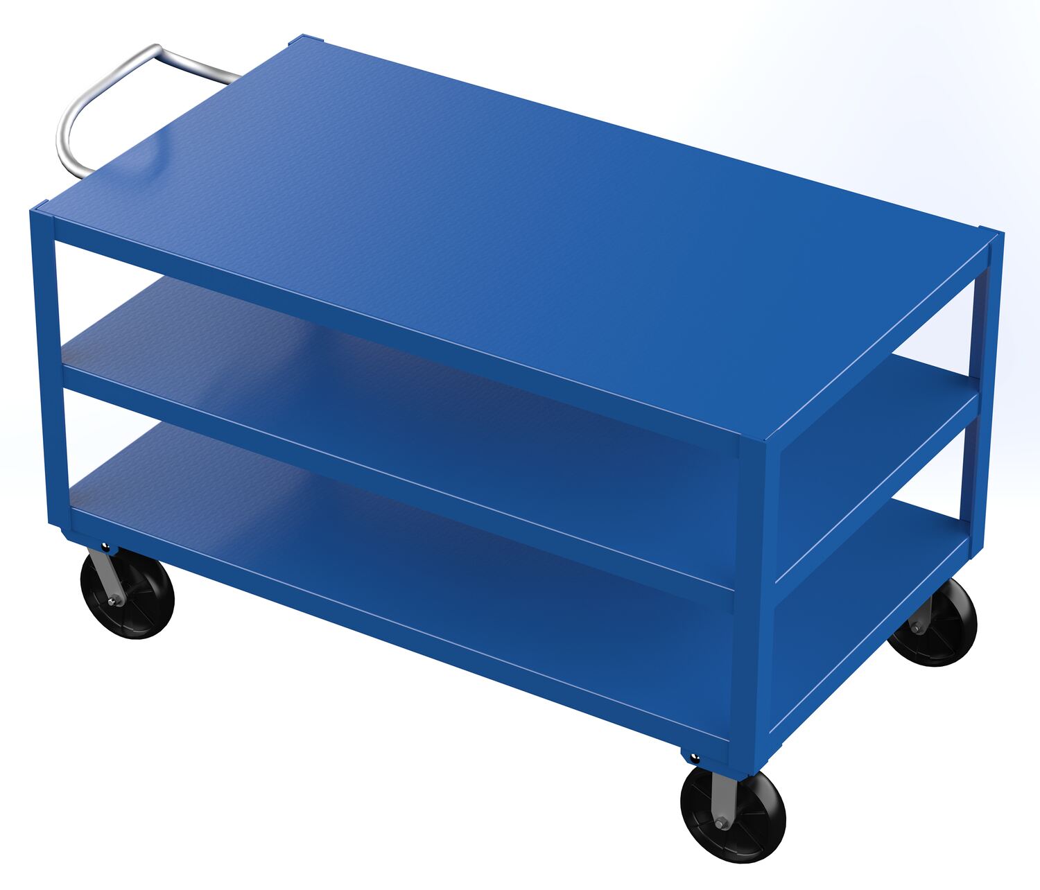 | Steel 30 In. x 60 In. Platform Heavy Duty 3 Shelf Ergo Handle Cart with GFN Casters 4000 Lb. Capacity Blue | Maximum Cart Capacity (lb.): 4,000 Maximum Shelf Capacity (lb.): 2,000 | 331 |