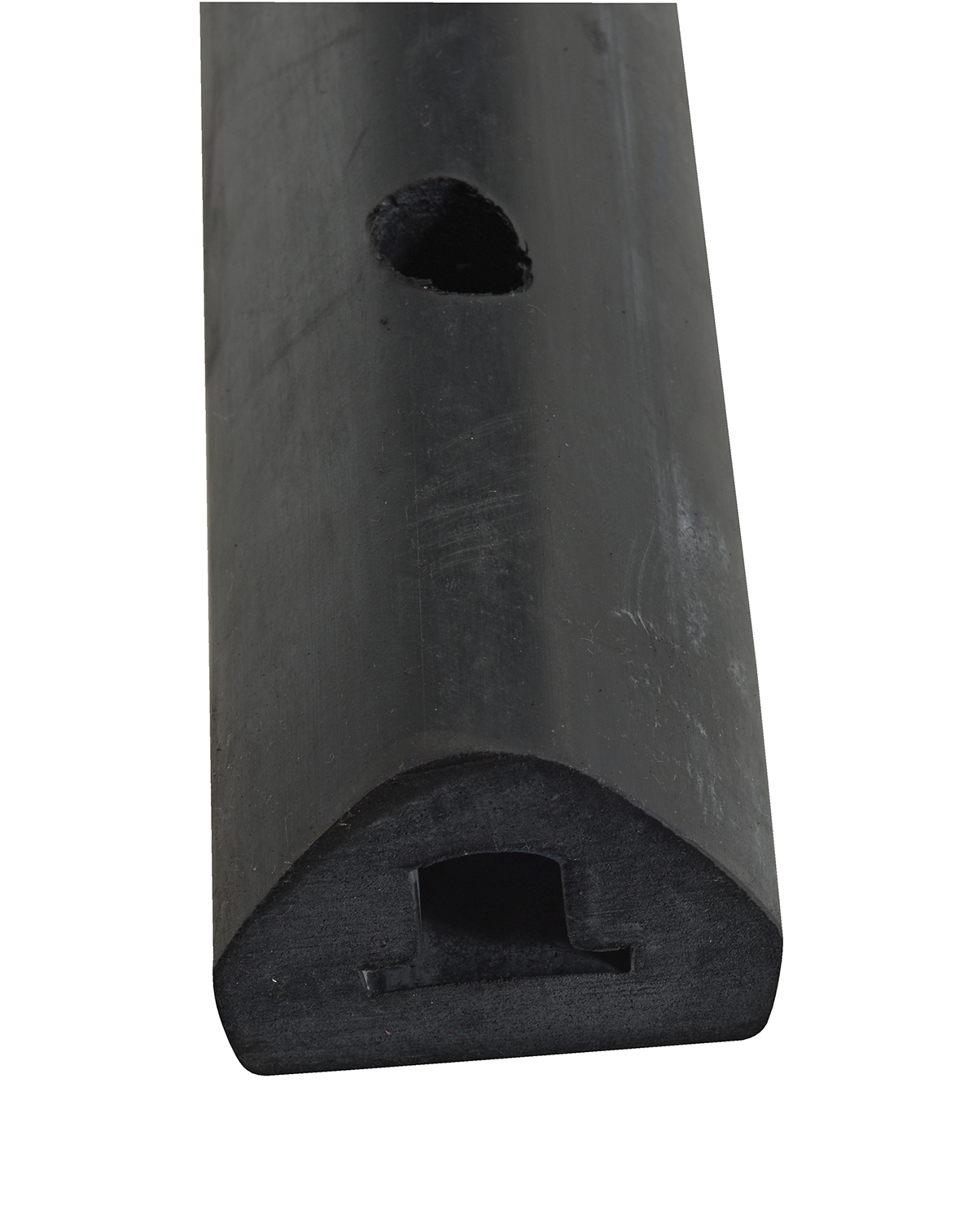 Made of all weather and abrasion resistant rubber. The half-oval shape allows for effective fendering action over a wide radius. A metal plate is located inside 4" and 6" projection bumpers for support while the 2" unit comes with one washer per hole. 120" models do not include holes or support material. 120" long bumpers run longer in order to be cut to final length. Custom lengths available up to 10 feet. Installation hardware sold separately.